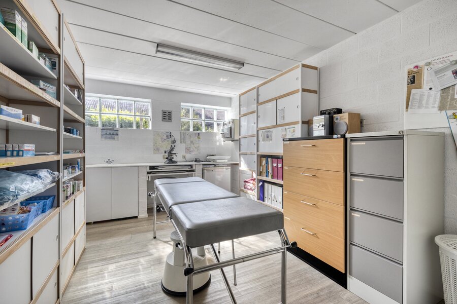 Le cabinet médical est accessible par une entrée indépendante et se compose d’une salle d’attente, de sanitaires et de trois cabinets distincts. Cet espace convient parfaitement à une profession médicale ou paramédicale, mais peut également être aménagé à d’autres fins professionnelles, ou intégré dans l’espace de vie.