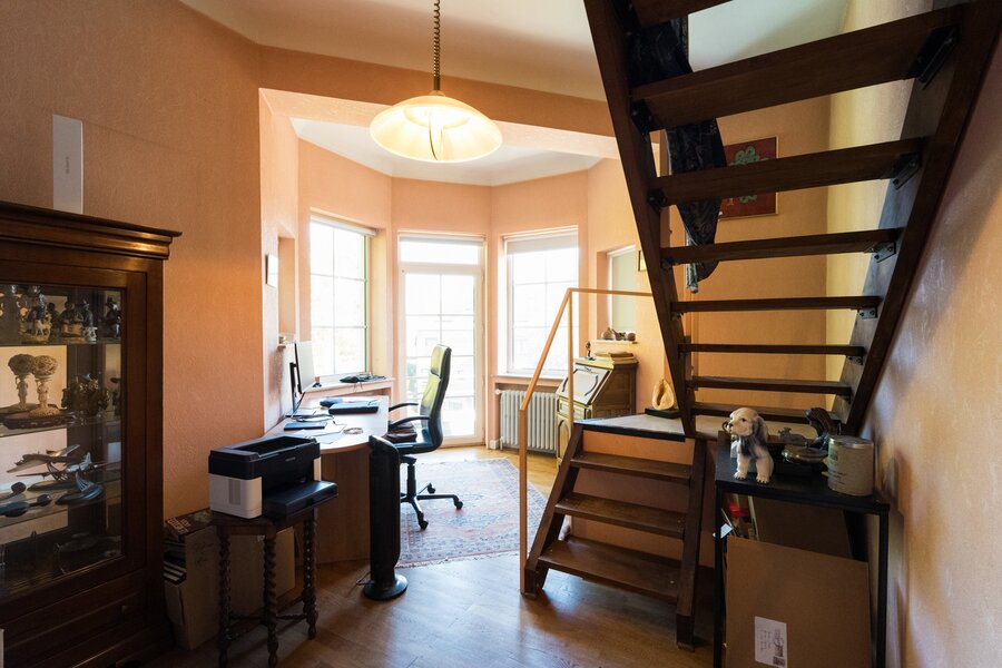 Chambre 2 (12m²) : parquet, balcon, accès au 2ème étage