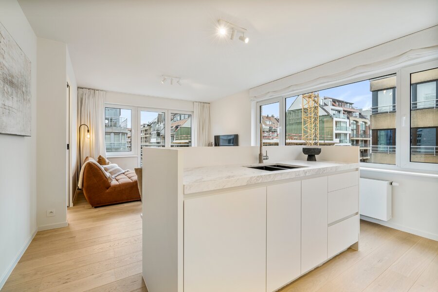 Lumineux appartement de coin prêt à emménager situé au centre de Knokke entre l'avenue Lippens et la Place Rubens.