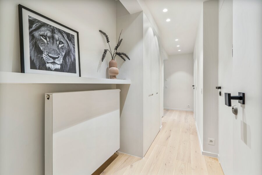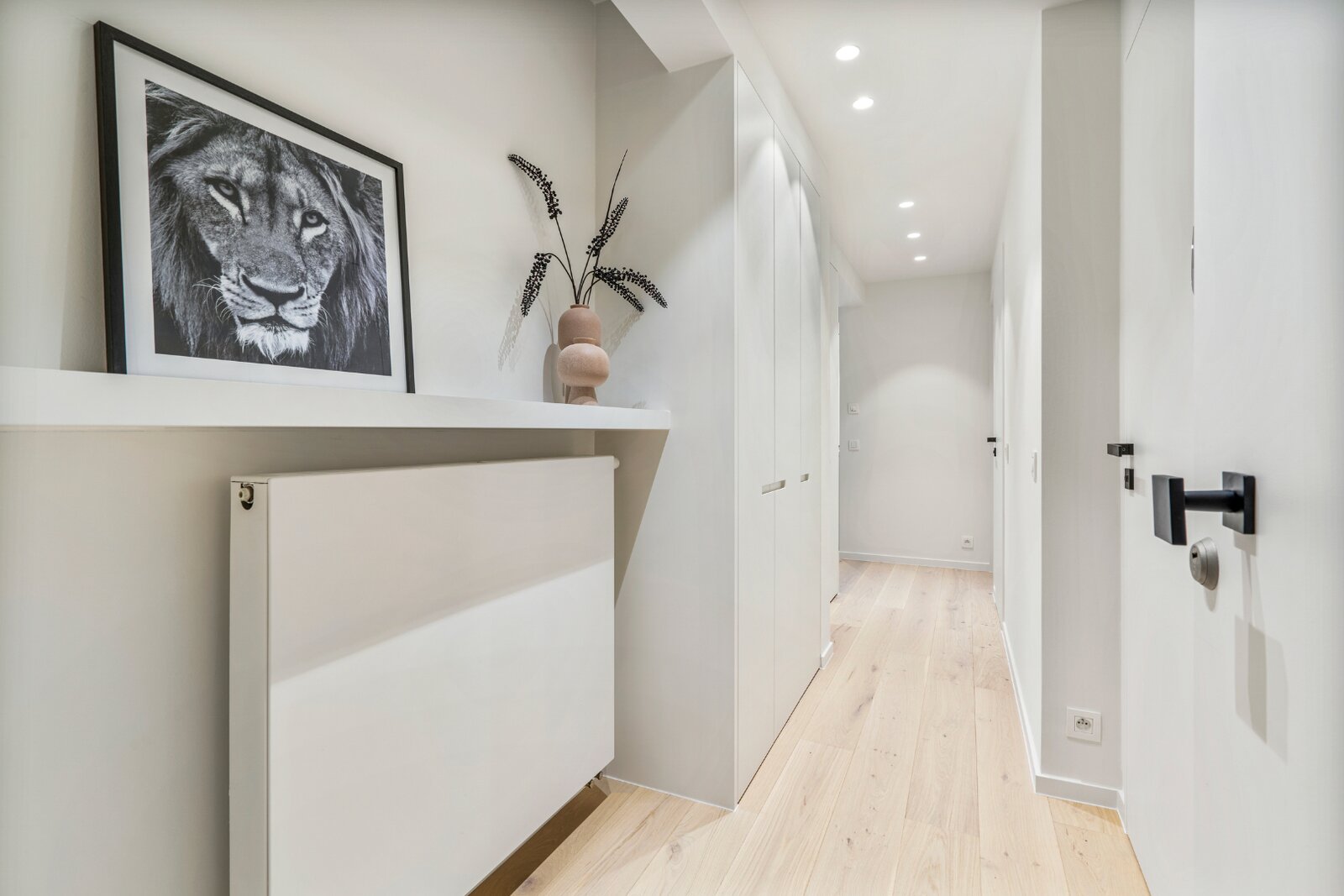 Hall d'entrée avec vestiaire et toilettes pour invités. Débarras pour machine à laver et sèche-linge. Cuisine ouverte avec îlot. Séjour lumineux composé d'un coin repas et d'un salon. Chambre à coucher 1 avec salle de douche attenante avec double lavabo. Chambre à coucher 2 avec lit superposé pliable. Cave privative. Contactez Agence Pallen pour planifier une visite.