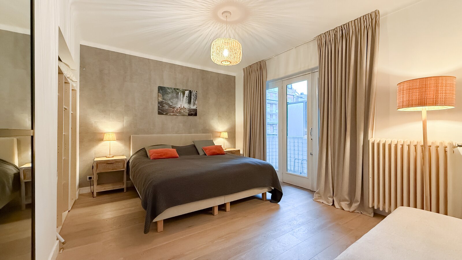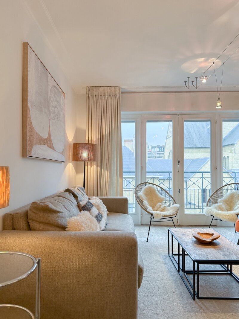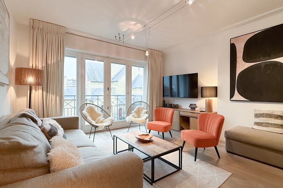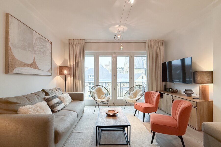 L’appartement comprend deux chambres, dont une spacieuse suite parentale à l’arrière avec accès à une seconde terrasse. La deuxième chambre est située à l’avant.