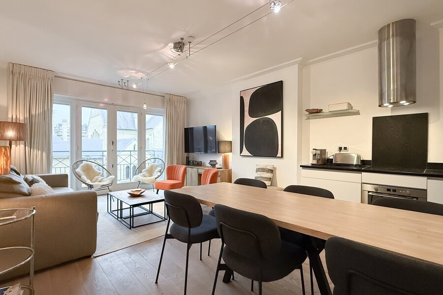 Cet appartement idéalement situé offre une agréable sensation d’espace et de luminosité grâce à sa vue dégagée sur l’église du Sacré-Cœur et son excellente orientation. Un lieu de vie idéal pour ceux qui recherchent confort et emplacement privilégié.