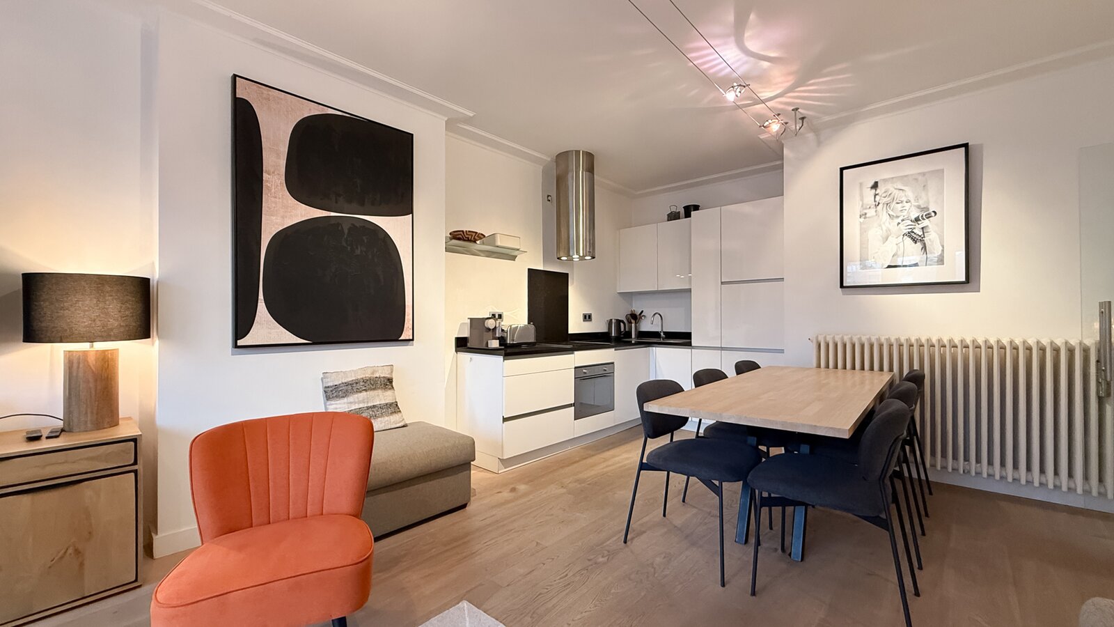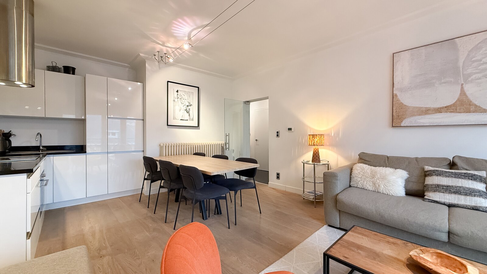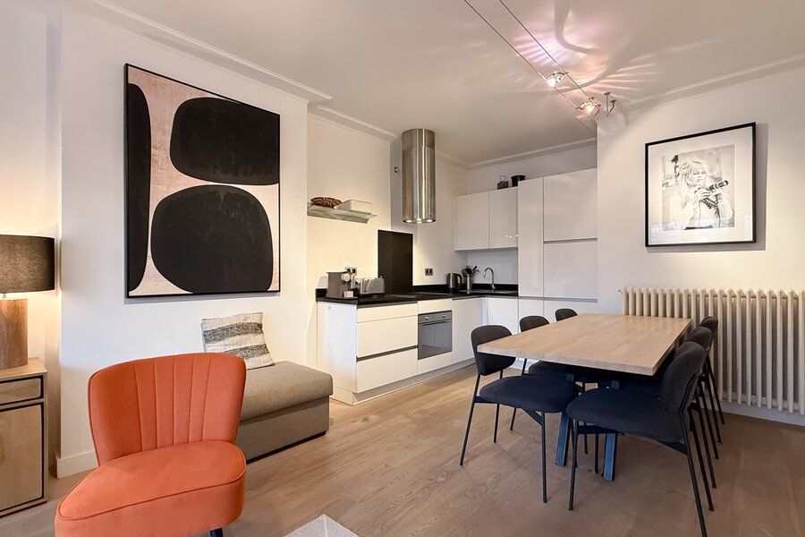 La cuisine ouverte est entièrement équipée et dotée de tout le confort moderne.