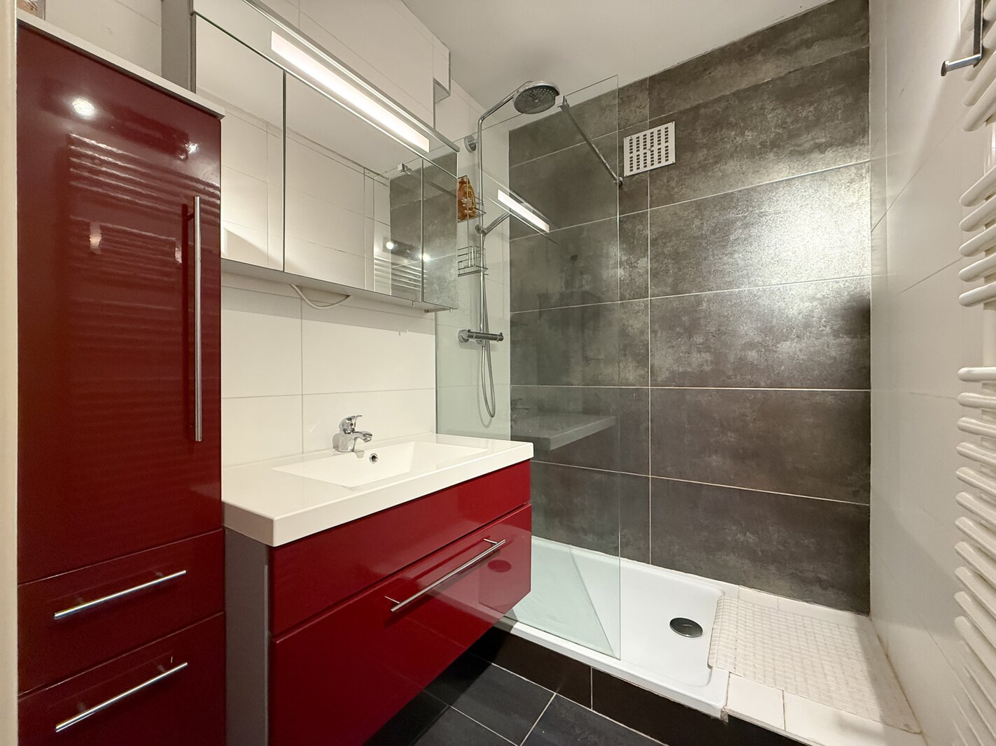 Une salle de douche séparée complète l’ensemble.