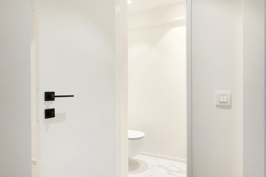 Au niveau du séjour, il y a une belle cuisine ouverte avec des placards en chêne et un plan de travail en marbre, équipée de tous les appareils (lave-vaisselle, réfrigérateur, congélateur, plaque de cuisson à induction). La cuisine est située sur une terrasse orientée à l'est où il y a de la place pour une table à manger ou un salon. En outre, la cuisine dispose d'une pièce de rangement avec branchement de machine à laver et espace de stockage.