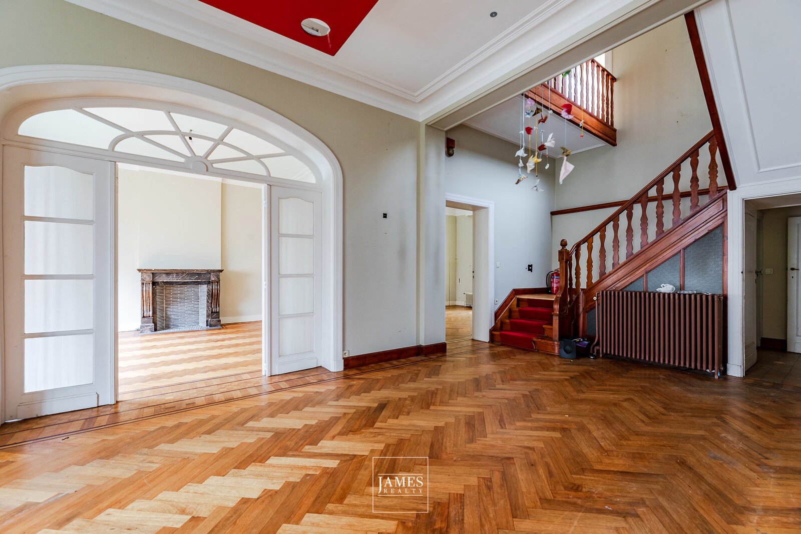 Quartier Cavell, très bel ensemble immobilier de deux maisons présentant une façade à rue de 35 mètres et situé sur un magnifique parc sud-ouest de 30 ares. Cet ensemble permet d'y réaliser un projet de rénovation pour en refaire une belle maison de famille ou du mixte. Un permis a été délivré par la Commune et purgé de tout recours, pour une démolition afin d'ériger un ensemble composé d'une maison unifamiliale et d'un immeuble Rez+3 composé d'appartements et un sous-sols parkings et caves