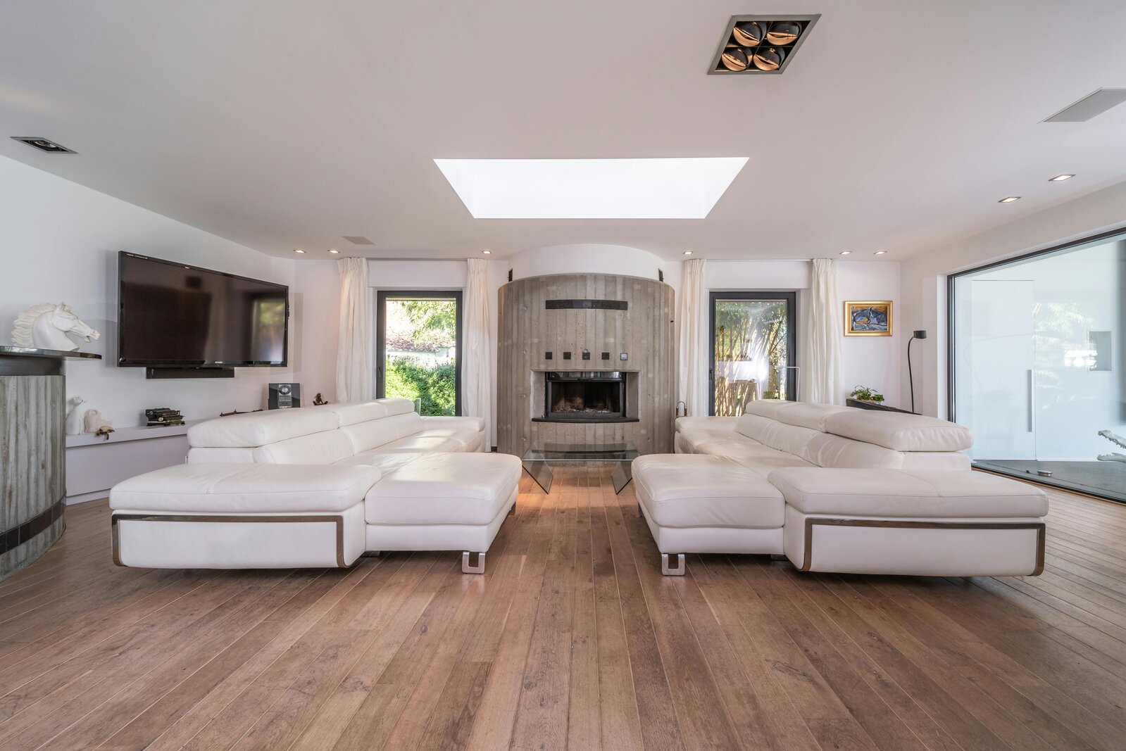 La villa est également économe en énergie avec un EPC de 131 kWh/ (m² par an). La maison est chauffée par une combinaison de 2 pompes à chaleur et d'une chaudière à gaz. Il y a également 36 panneaux solaires (installés en 2024).