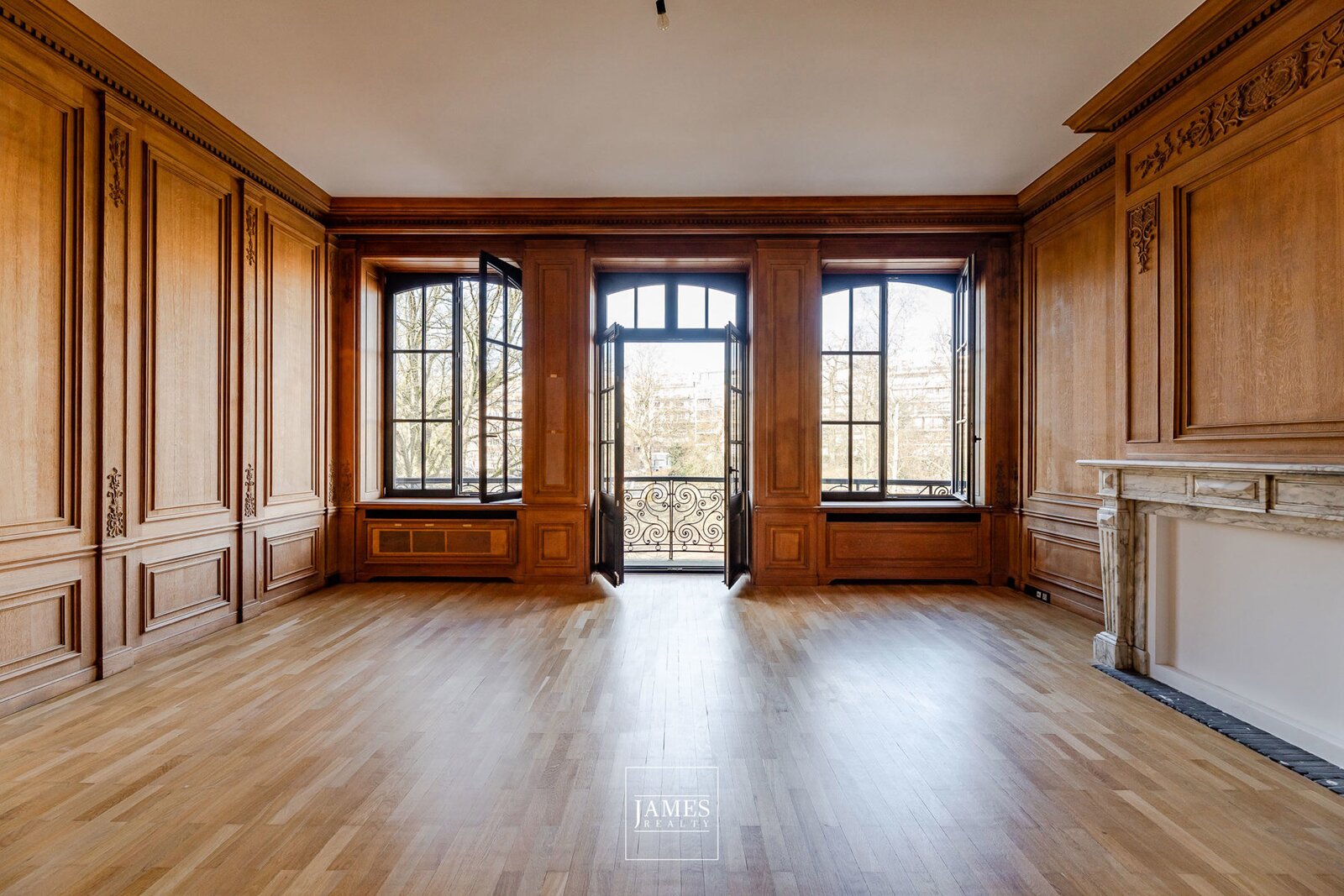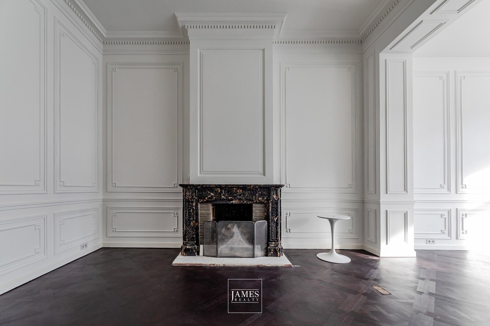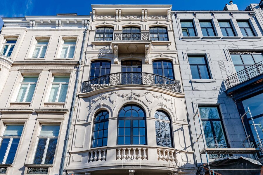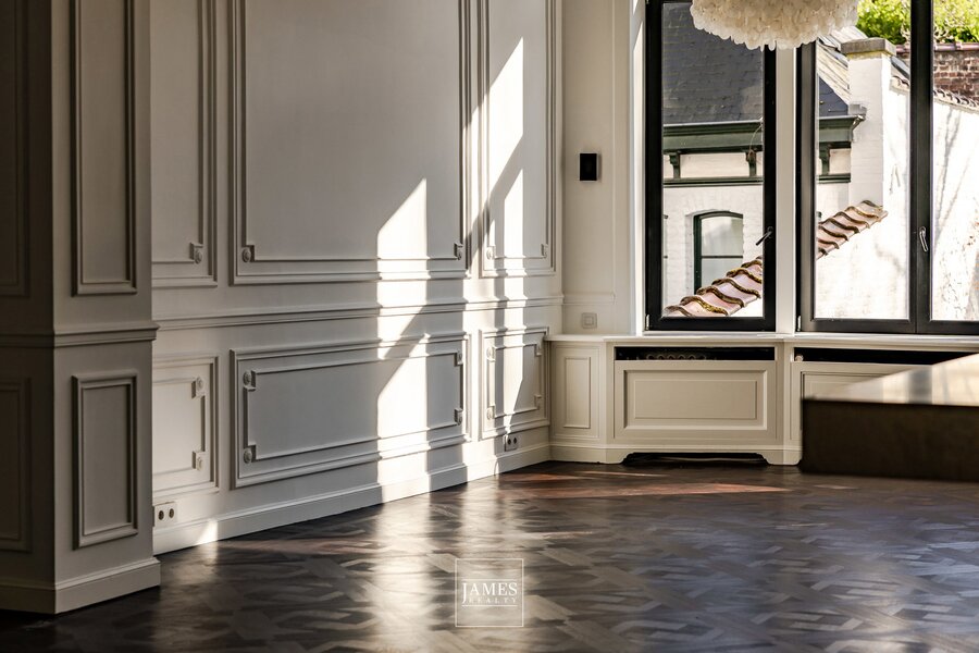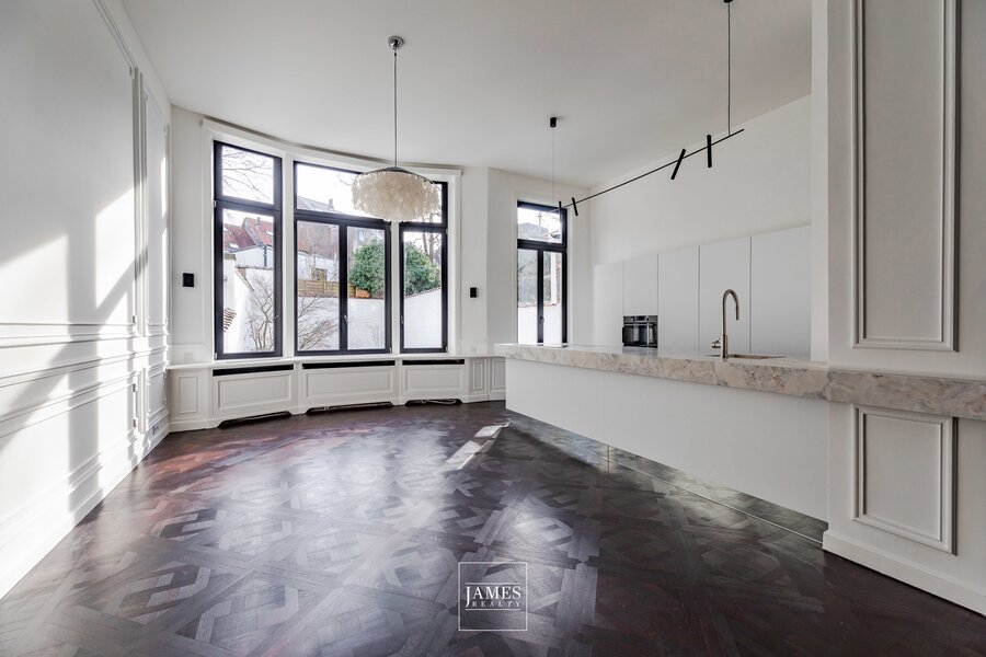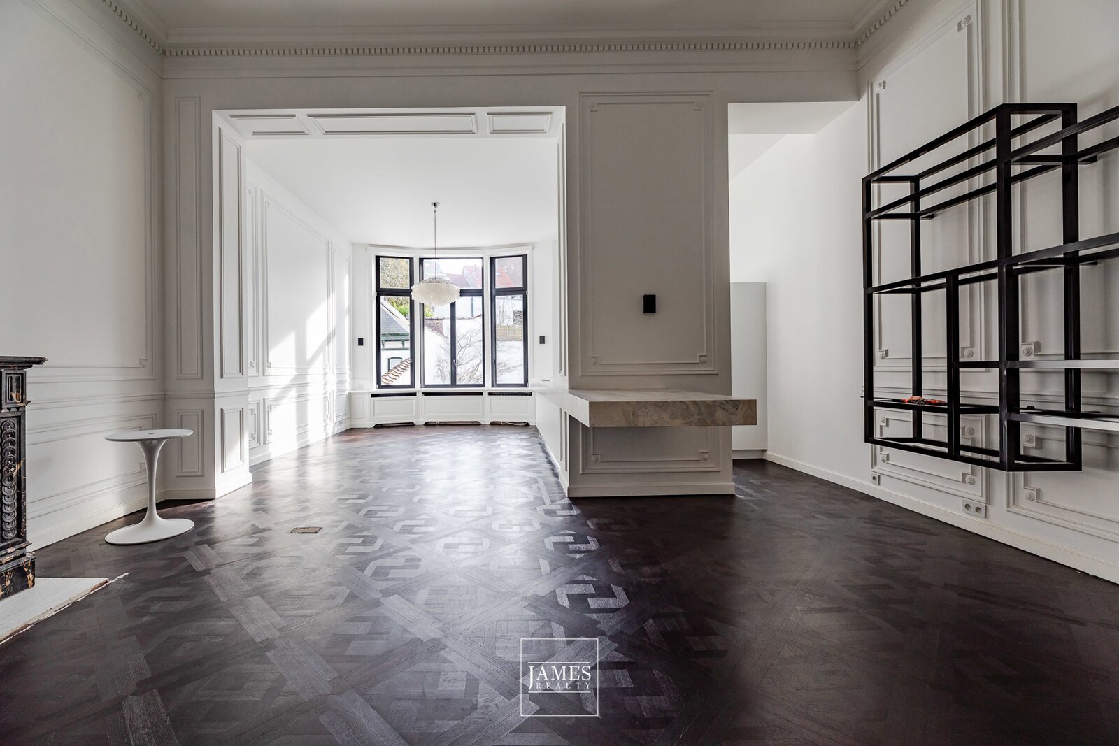 Très bien située dans une rue élégante des étangs d'Ixelles, ravissante maison de maître de style Beaux-Arts (architecte Georges Cochaux) intégralement rénovée il y a un an (après une rénovation complète par 3ème bureau il y a une vingtaine d'années) tout en conservant ses éléments d'origine de qualité tels que parquets en chêne, hauts plafonds moulurés, manteaux de cheminée en marbre etc).