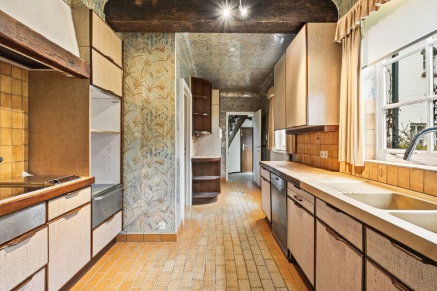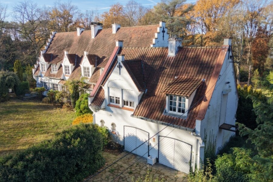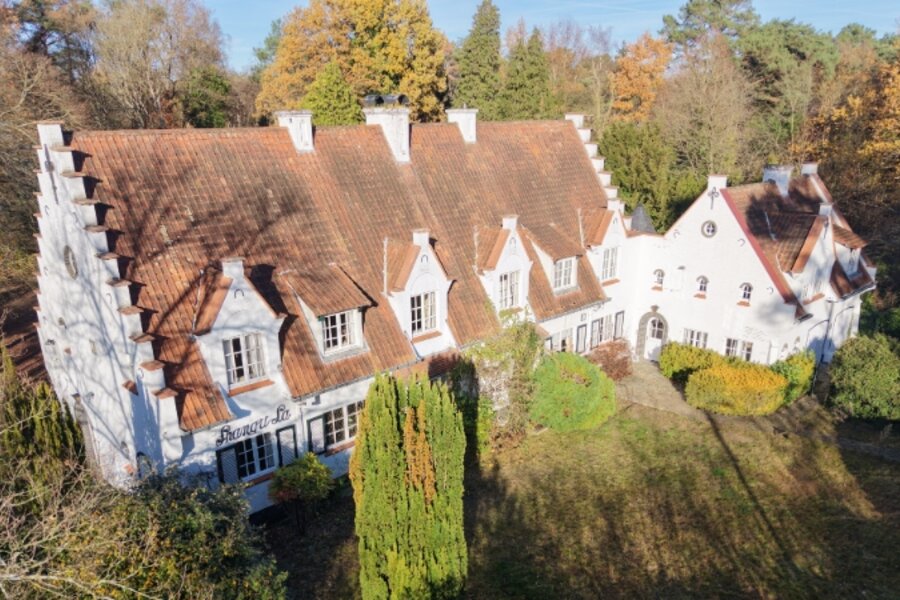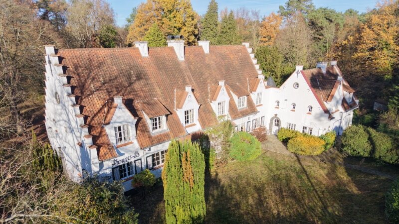 Omvat: 80m² diverse kelders, 2 inkomhallen, vestiaire, wc, zeer ruime living 93m² + veranda 21m², keuken met ontbijthoek, wasplaats-berging, 2 garages, 3 bad-of douchekamers, 7 slaapkamers (32m² met dressing - 20m² - 13m² - 12m² - 11m² - 10m² - 10m²), kitchenette.