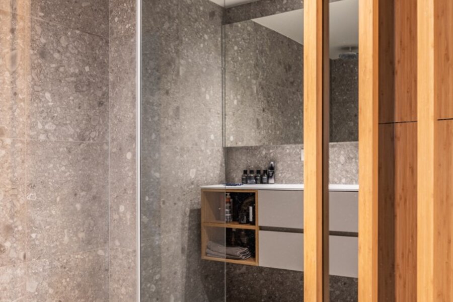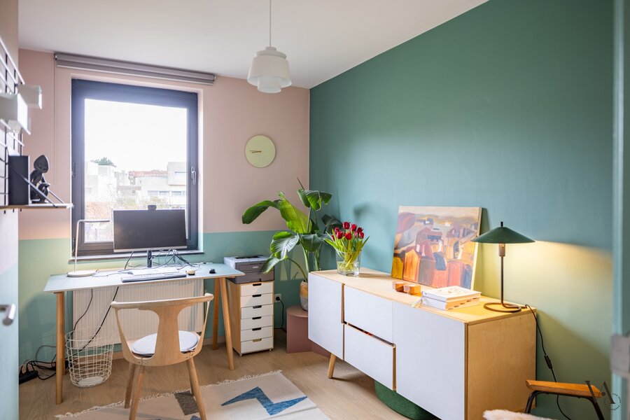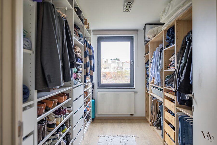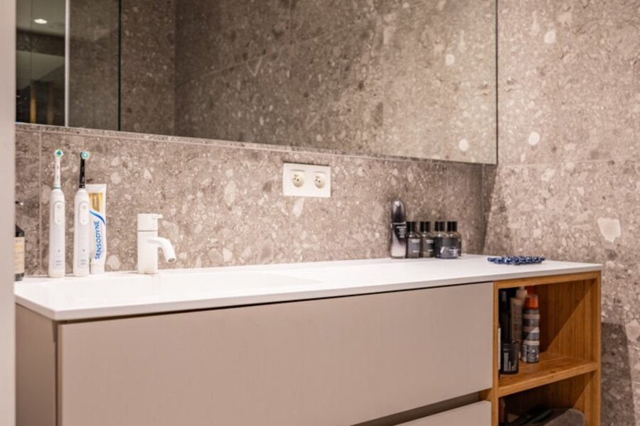 Je betreedt het appartement via de inkomhal op de tweede verdieping. Op dit niveau bevinden zich de vier slaapkamers, rustig gelegen aan de achterzijde van het gebouw. De master bedroom straalt rust uit, terwijl de overige kamers perfect kunnen dienen als kinder-, logeer- of bureauruimte. De stijlvolle badkamer is uitgerust met een inloopdouche, lavabo en toilet. Daarnaast is er op de nachthal een aparte wasberging, wat het dagelijkse comfort verhoogt.