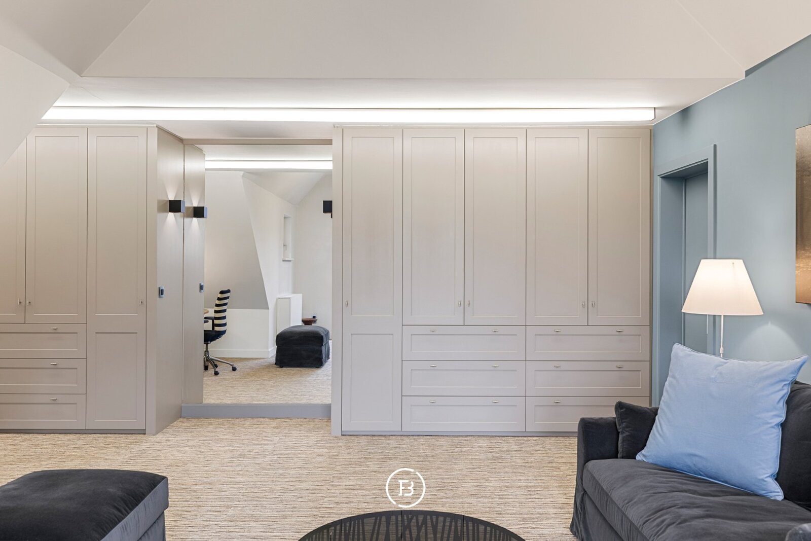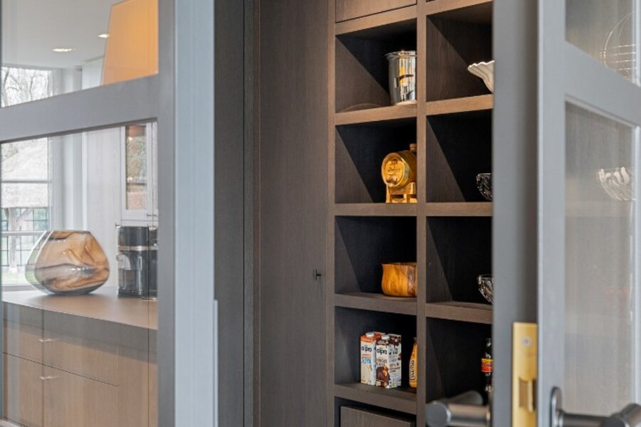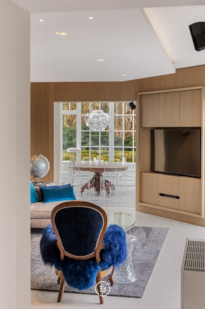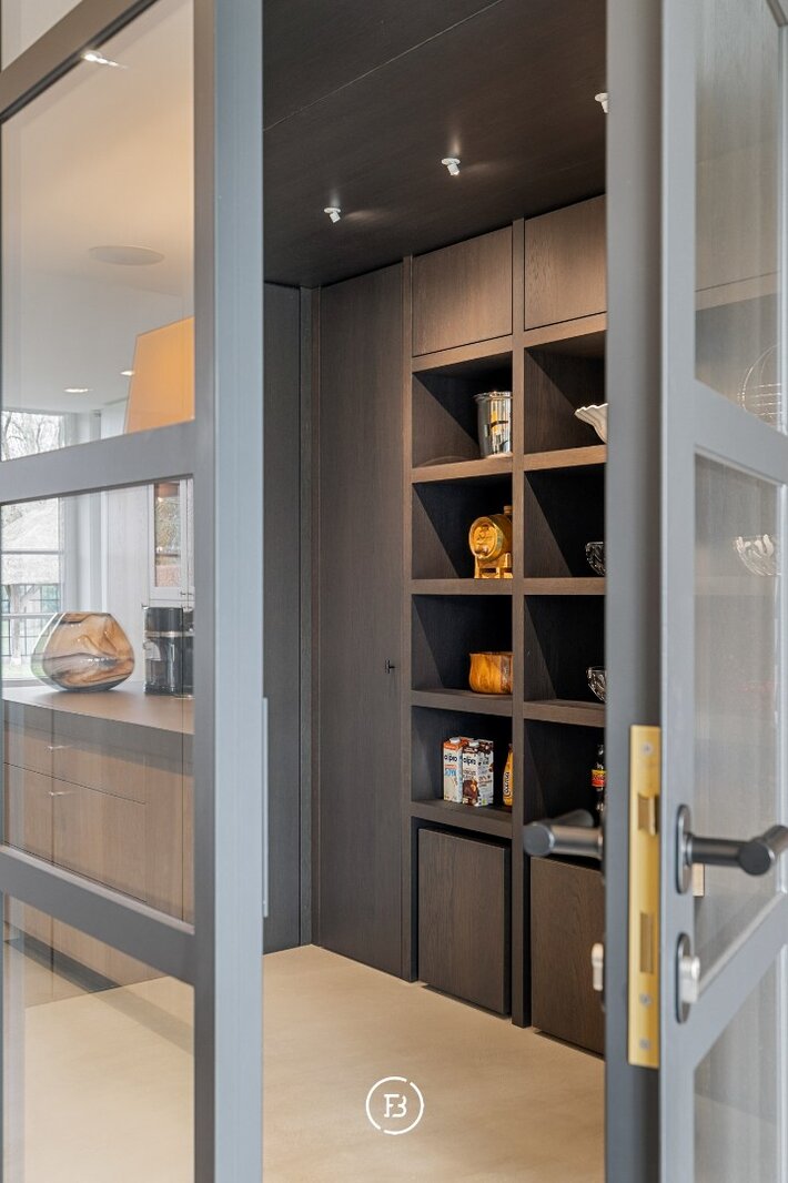 La cuisine sur mesure, équipée d'appareils de qualité tels qu'une cuisinière à gaz LA CORNUE, des doubles fours et des équipements modernes supplémentaires, est le cœur de la maison. Un îlot de cuisine qui se prolonge dans une grande salle à manger et l'accès à deux terrasses - l'une avec vue sur la piscine et l'autre idéale pour un petit-déjeuner ensoleillé - complètent l'ensemble.