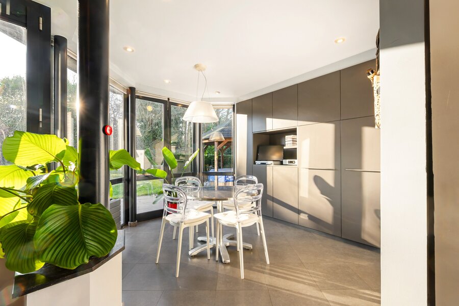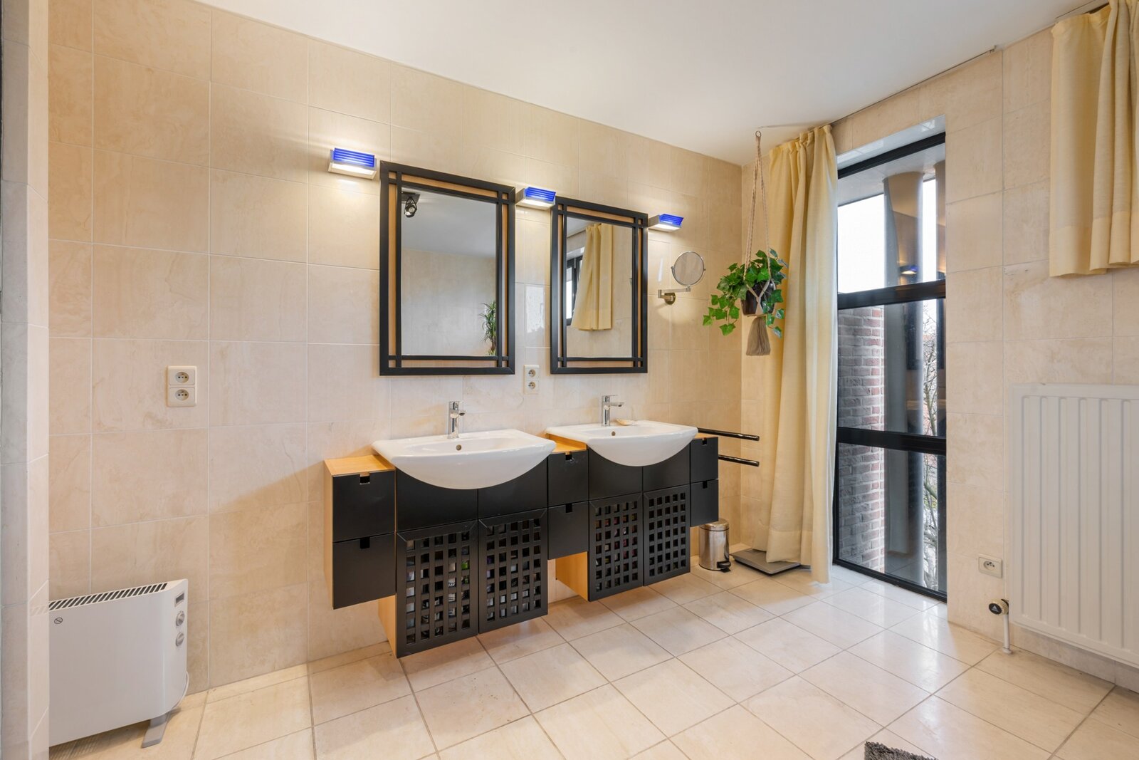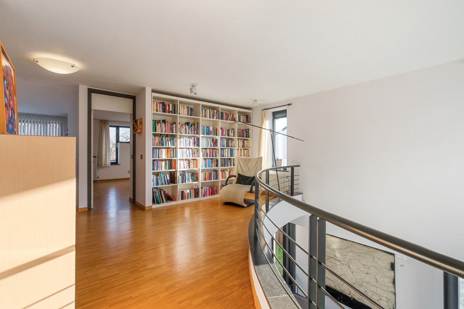 A quelques pas de Louvain, dans l'un des quartiers résidentiels les plus prisés, nous trouvons cette villa spacieuse et intemporelle. Dans un environnement verdoyant et paisible, il est possible de combiner vie et travail. Avec 660 m² d'espace utilisable, il y a de nombreuses possibilités tant sur le plan familial que professionnel. La façade haute et large cache une succession de grandes pièces lumineuses. En entrant dans la maison, on est surpris par la hauteur du hall et de la salle de séjour qui se connectent harmonieusement. Le luxe et la grandeur vous accueillent comme il se doit. Le foyer souligne la convivialité que l'on ressent ici. Le salon, la salle à manger, la cuisine et le coin petit-déjeuner baignent tous dans la lumière car ils donnent tous sur les fenêtres du jardin et des terrasses arrière. Depuis le salon, une mezzanine offre une connexion avec la bibliothèque/bureau au premier étage. Avec 4 chambres, dont 3 avec un lavabo, il y a également beaucoup d'espace (privé) ici. Ensuite, il y a encore 2 belles pièces. Elles peuvent éventuellement être utilisées comme bureaux car elles sont également reliées à l'espace de pratique par un deuxième escalier. Au deuxième étage, il y a un immense grenier utilisable et aménagé.