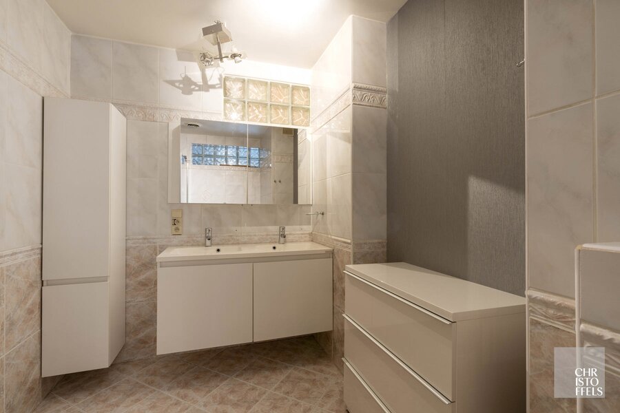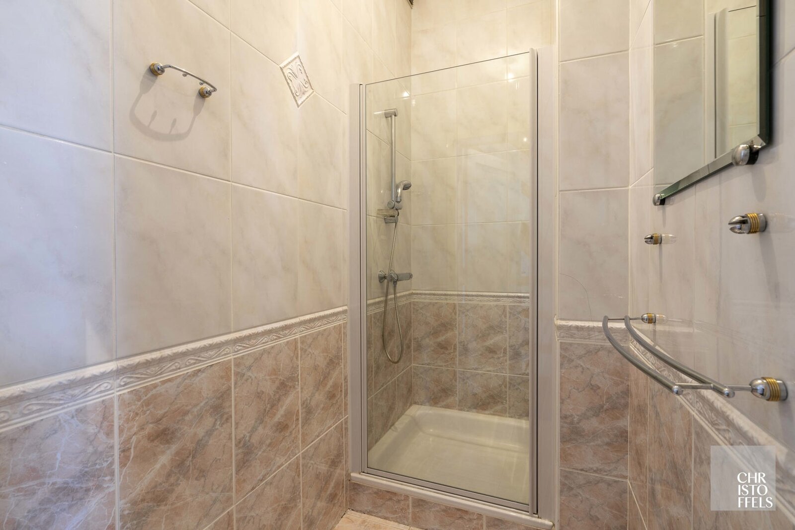 De eerste verdieping omvat een ruime open nachthal en drie slaapkamers, waarvan de masterbedroom voorzien is van een dressing, balkon en privé badkamer met ligbad en dubbele wastafel geintegreerd in een meubel. De tweede badkamer is uitgerust met een douche, dubbele wastafel geïntegreerd in een meubel en een toilet.