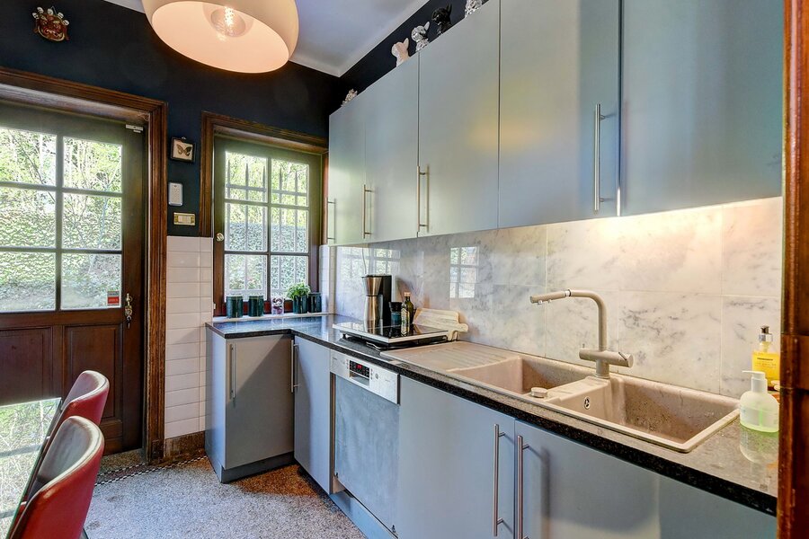 Cette charmante villa cottage, construite selon la légende pour le roi Léopold 2, bénéficie d'un emplacement unique dans le prestigieux quartier HOOGVORST, sur un beau terrain de 1574 m². Ce quartier offre un ensemble féerique de propriétés historiques dans une oasis de paix et de verdure. De plus, une excellente situation par rapport au parc, au marché et aux rues commerçantes de Tervuren, aux écoles, à Bruxelles-ville, à la place Dumon-Stockel et aux voies d'accès. Les transports en commun tram et bus sont accessibles à pied. Cette spacieuse villa (347 m² selon PEB) a été bien entretenue et comprend : Rez-de-chaussée : hall d'entrée avec vestiaire, toilettes, salon, salle à manger, cuisine, bureau. Beaux sols en granit et parquet. 1er étage : hall de nuit, 4 chambres, dressing, 2 salles de bains. 2ème étage : 4 chambres, 2 salles de bains, grenier. Sous-sol complet avec buanderie, débarras, cave à vin, local technique. Garage séparé, parking, beau jardin avec maison de jardin, étang/plan d'eau, terrasses, pergola, potager, toilettes extérieures.Sans amiante. PEB D. Patrimoine architectural établi. Au fil des ans, la villa a fait l'objet de rénovations dont une nouvelle toiture (1999) et une chaudière à gaz à condensation (2009). Vous souhaitez visiter cette villa ? Prenez rendez-vous via era.be ou appelez le 02/688 06 68, ERA IMMPULS