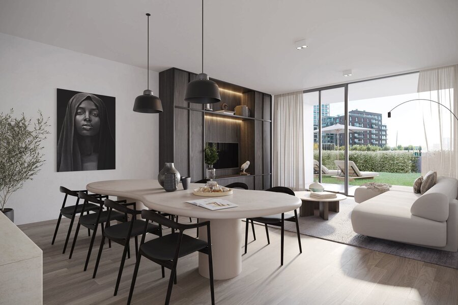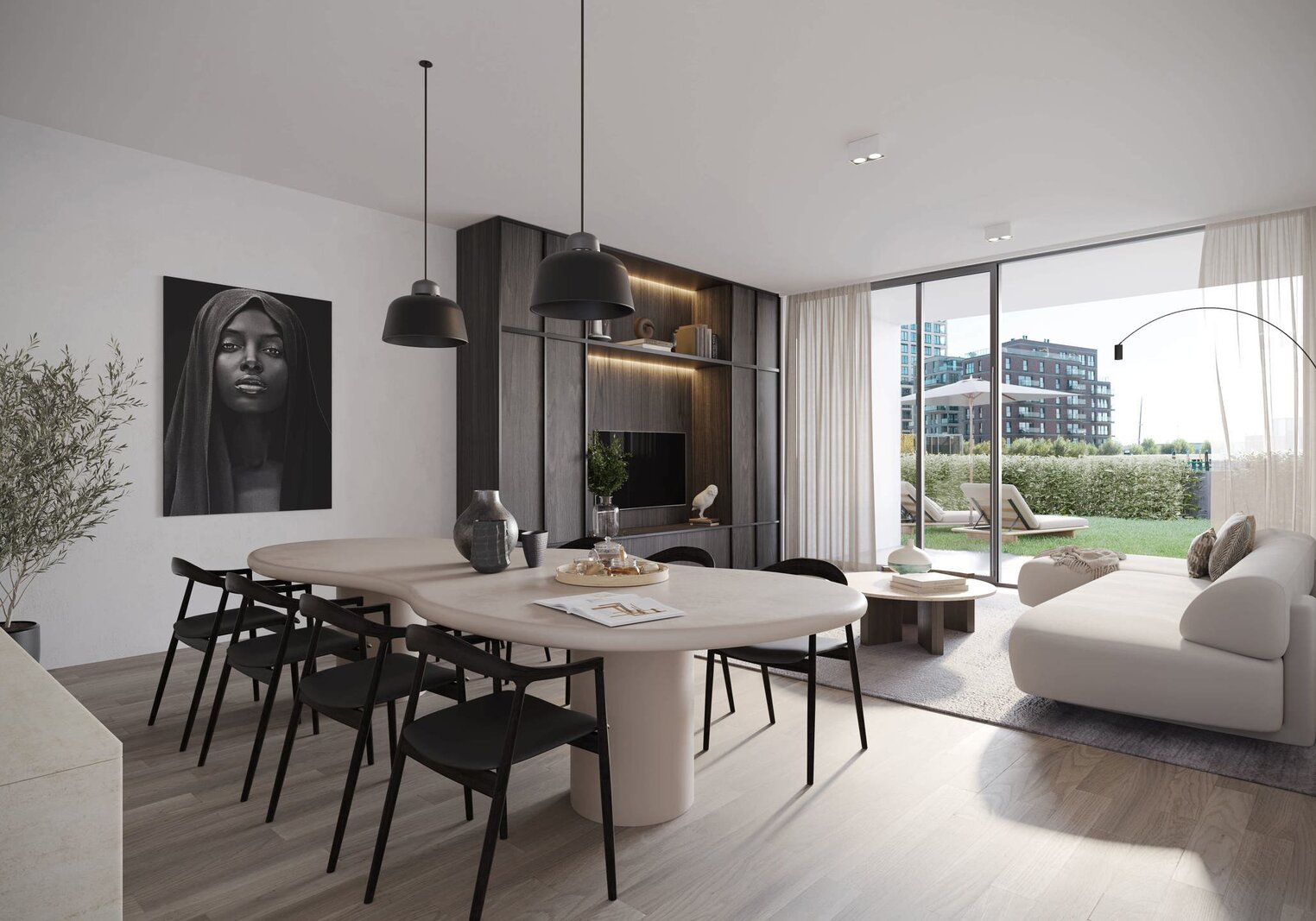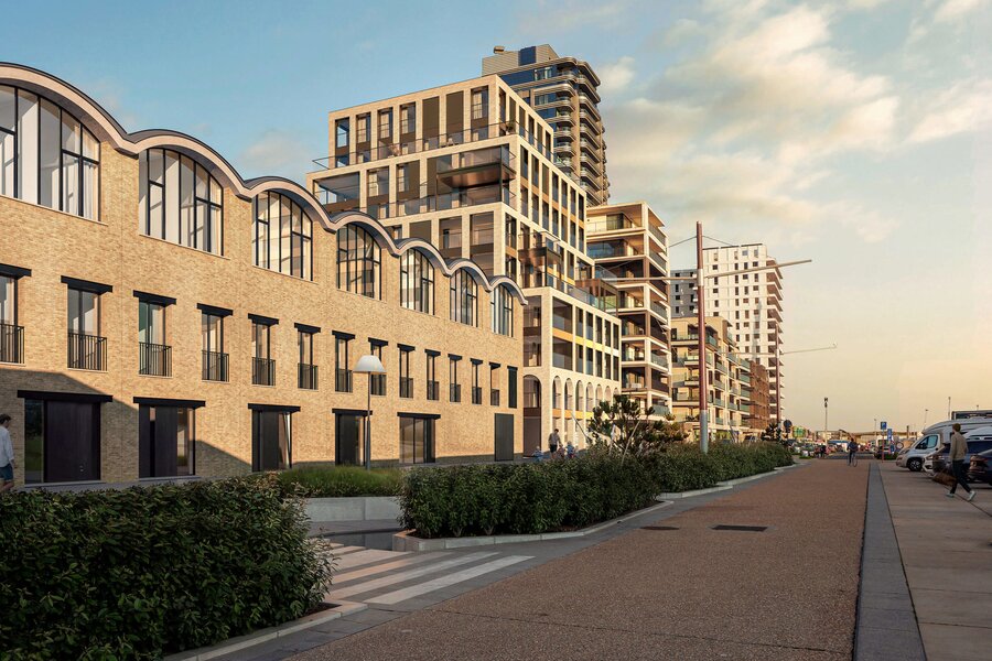 Dit nieuwbouwproject aan de Belgische kust is een unieke combinatie van historische charme en modern comfort. Het omvat 12 appartementen en 2 handelspanden, allemaal gebouwd in een opvallende bakstenen structuur met hoge raampartijen. De gelijkvloerse appartementen hebben ruime terrassen met privatieve tuintjes en genieten van een zuidoriëntatie, met uitzicht op het groene stadspark 'Central Park@Sea'.