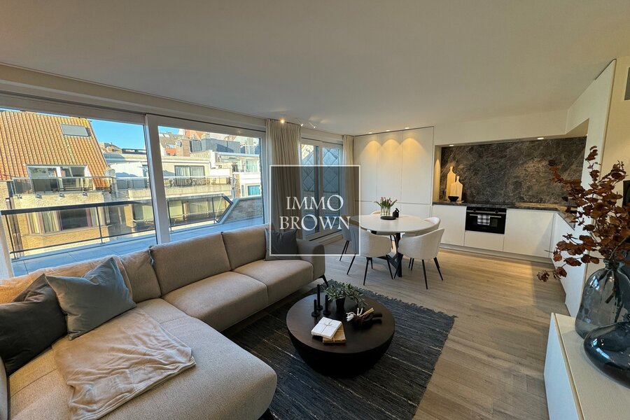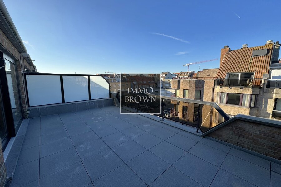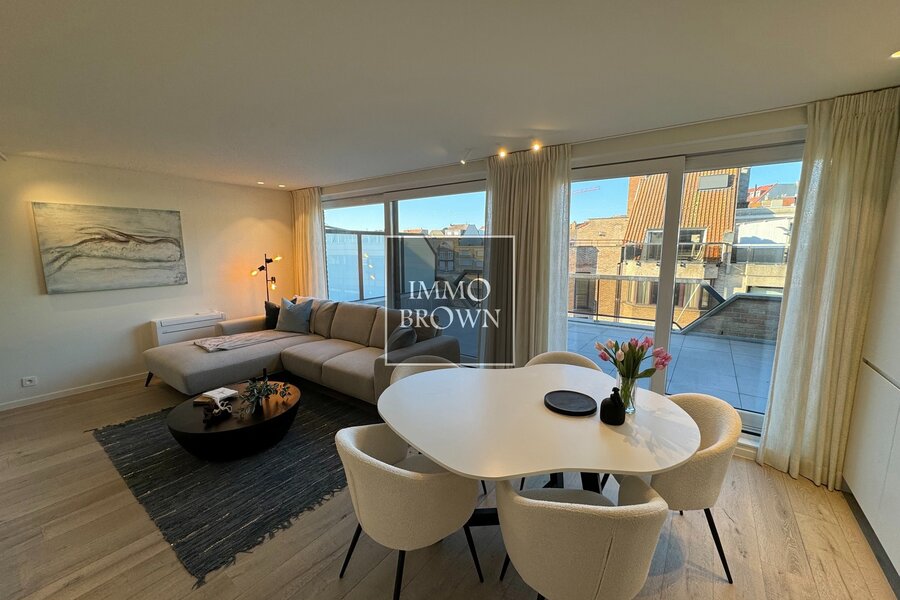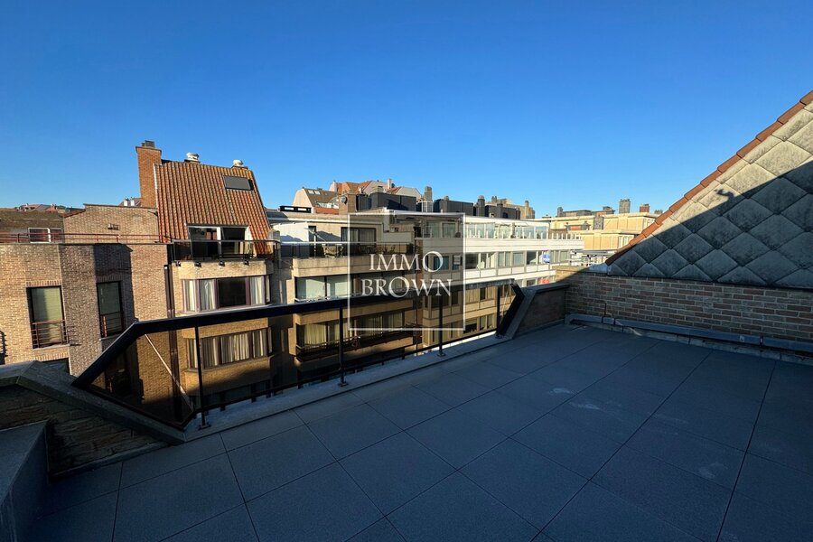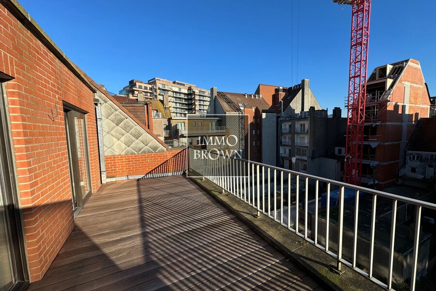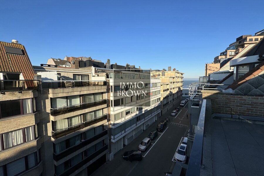 Penthouse rénové à vendre dans la Leopoldlaan près de la digue, jouissant de deux grandes terrasses ensoleillées.