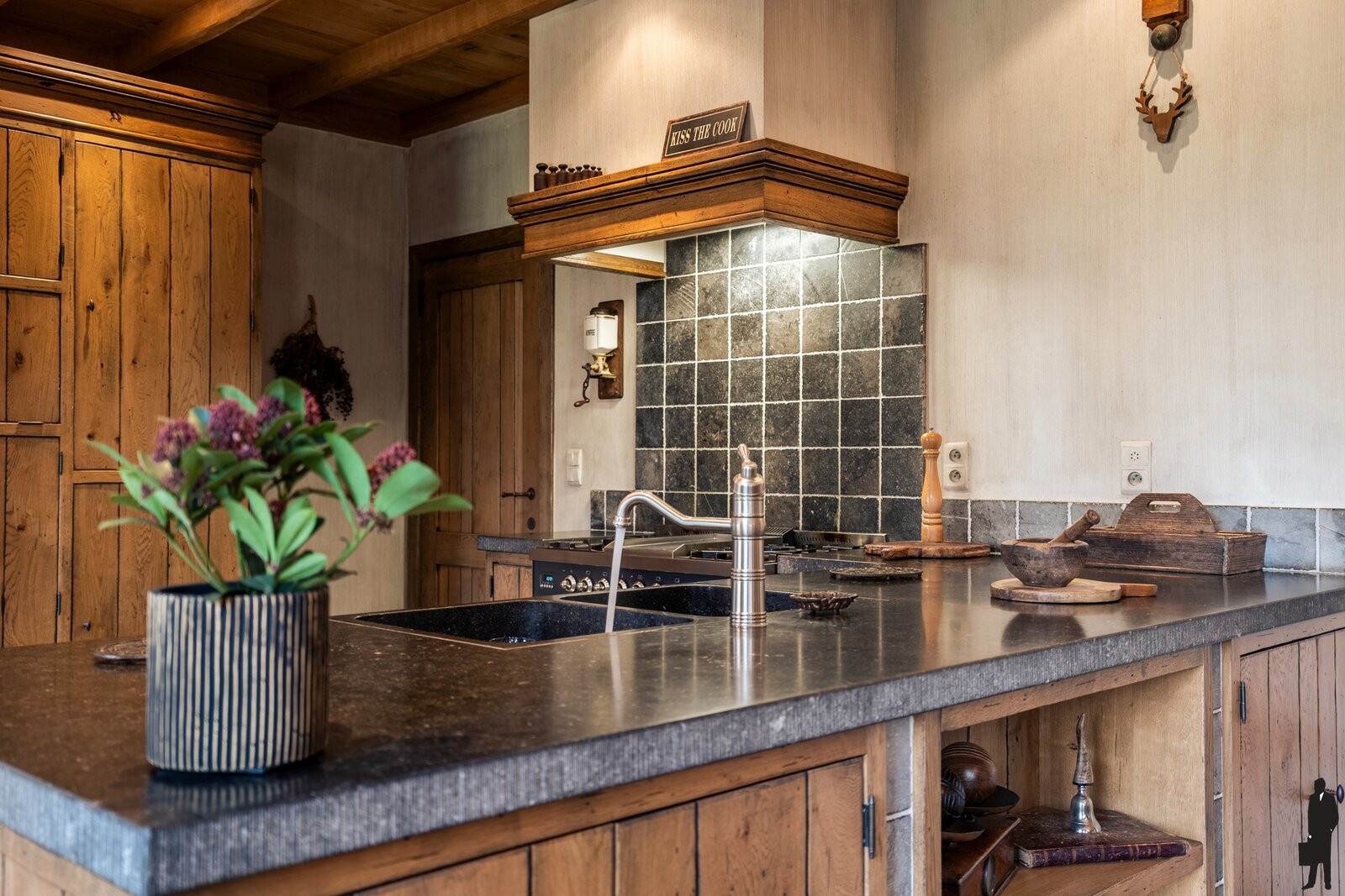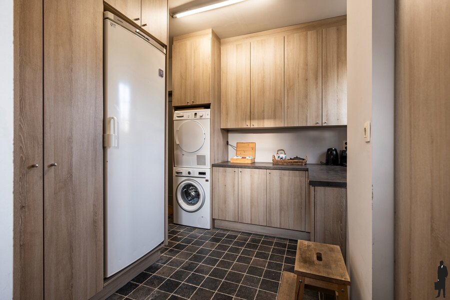 De keuken is volledig uitgerust met hoogwaardige apparatuur dewelke in 2015 volledig werd gerenoveerd. De keuken beschikt over een Borreti gasfornuis met 4 bekken en grillplaat, een grilloven, heteluchtoven, multifunctionele oven en oven met spit, een vaatwasser (siemens) en heel wat ingemaakte kasten. Naast de keuken vindt u enerzijds een aparte berging, perfect voor extra opbergruimte en anderzijds vindt u een ruime wasplaats met inbouwkasten.