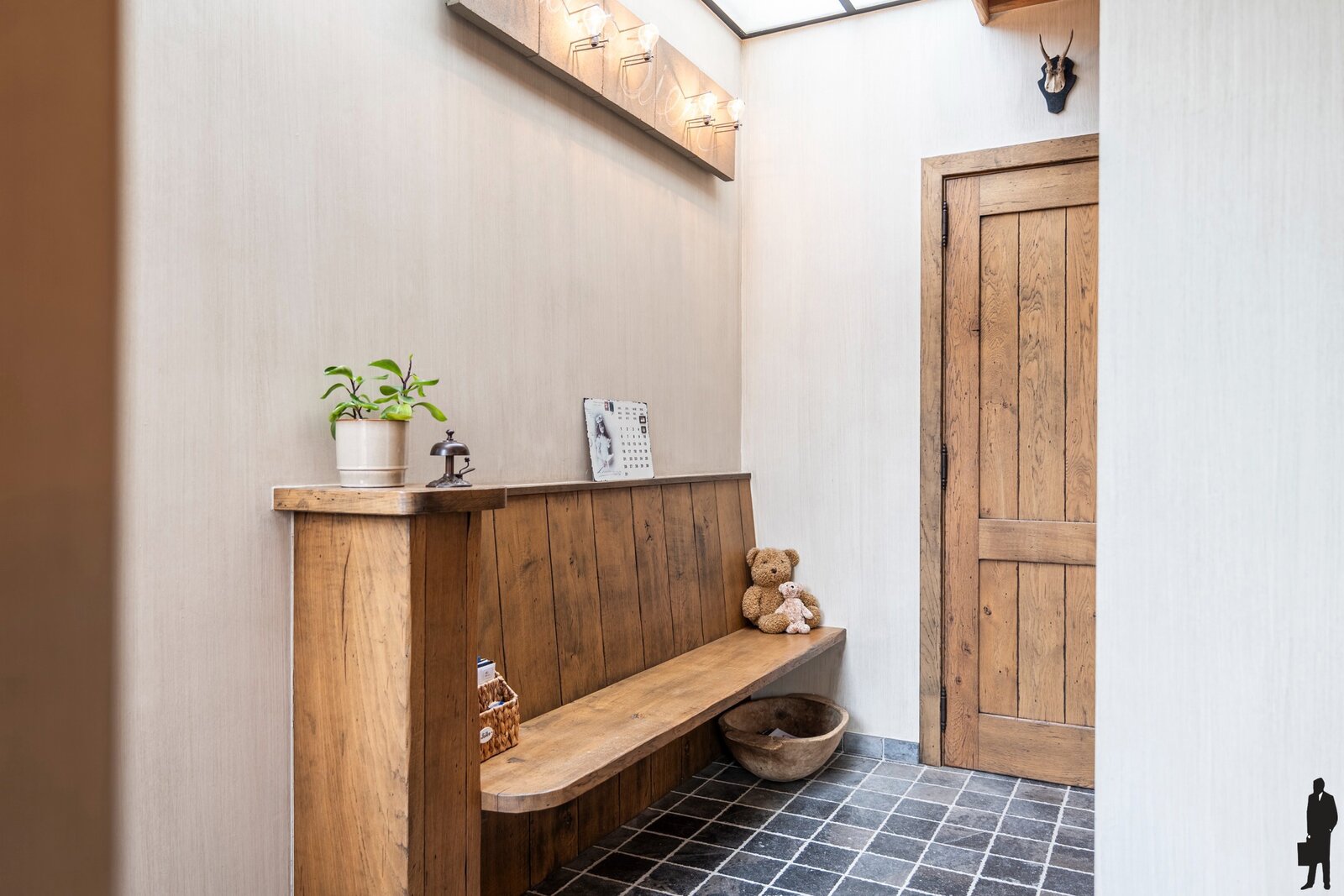 Via de zij- en achteringang, bereikt u de praktische vestiaire en gastentoilet.