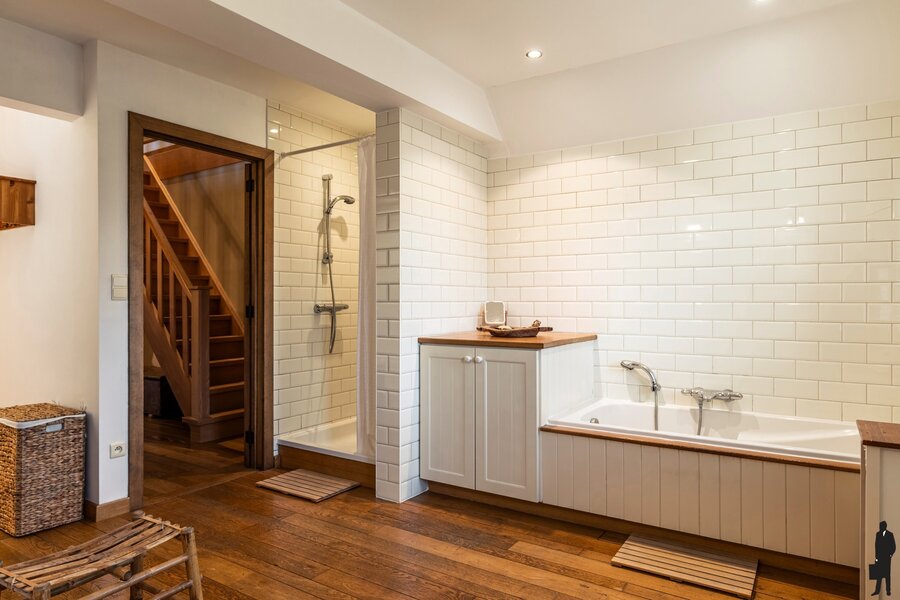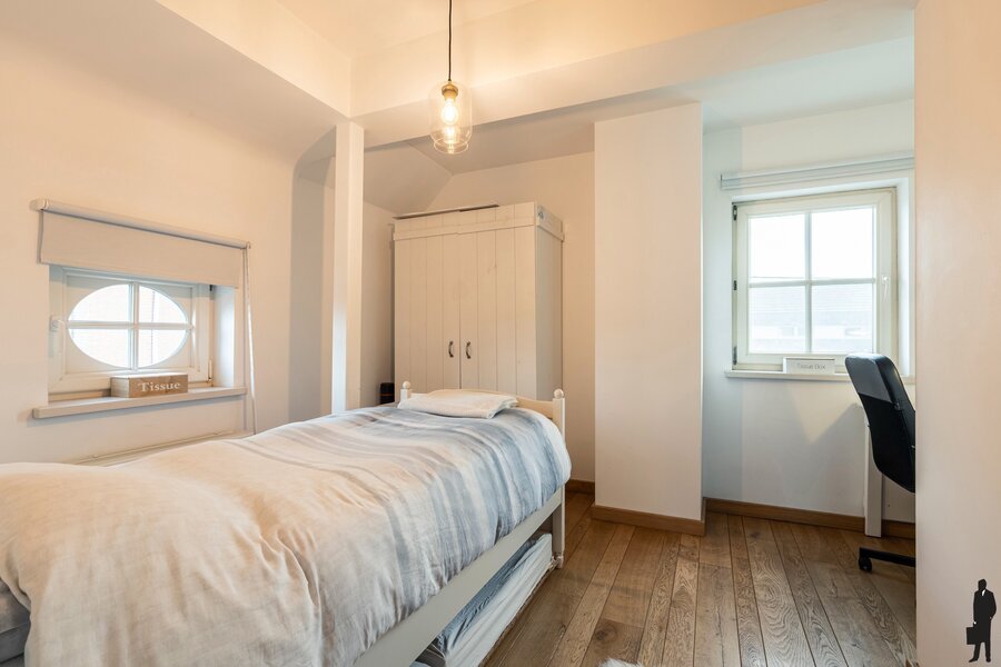 Op de eerste verdieping bevinden zich 3 tot 4 slaapkamers, allen op parket. De nachthal biedt verder toegang tot een ruime badkamer met twee wastafels, douche, ligbad, toilet en ingemaakte kastruimte/dressing.
