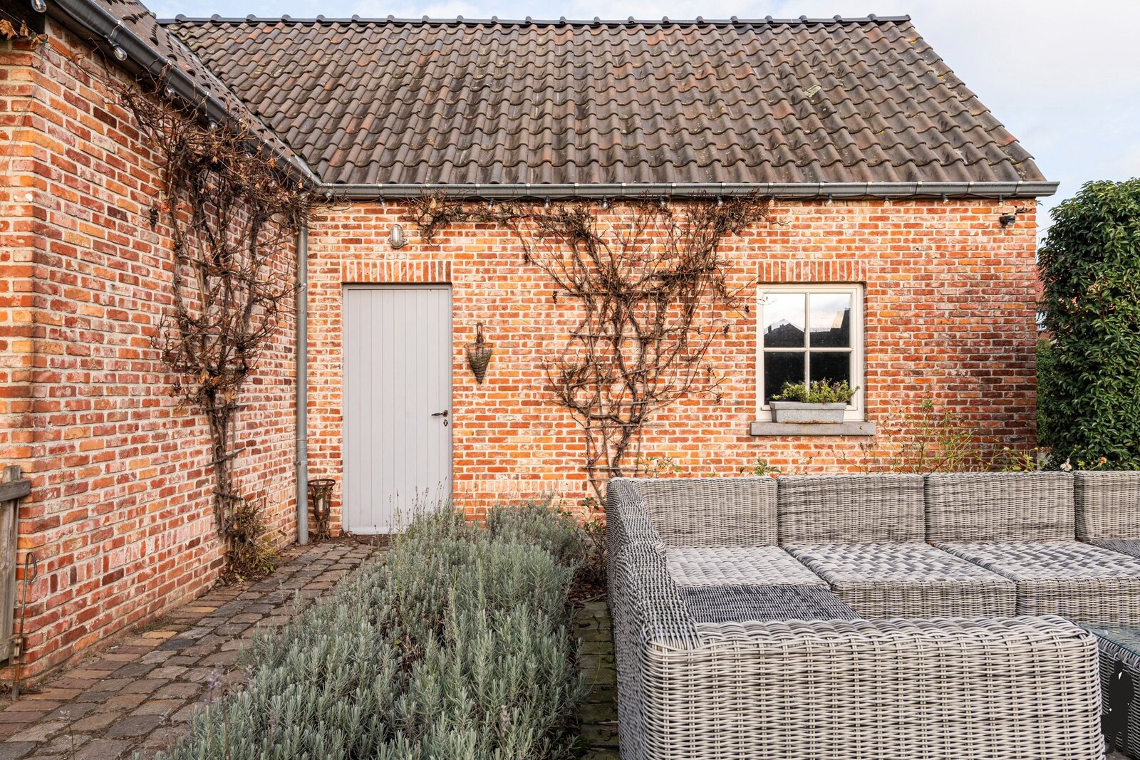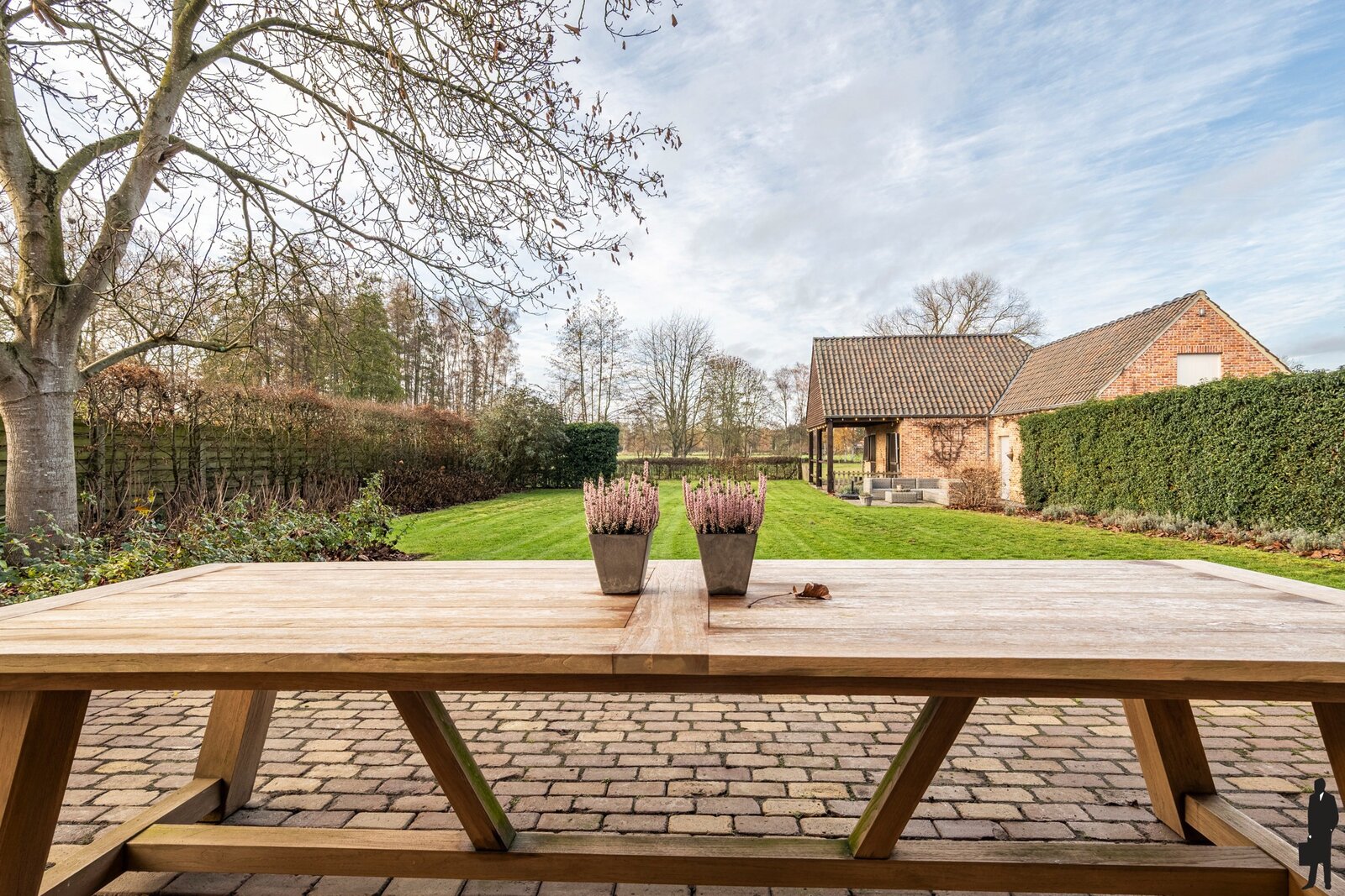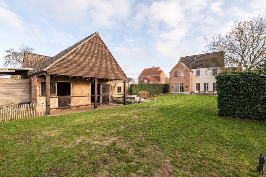 De woning beschikt over een private, volledig omheinde en diepe achtertuin, met verschillende terrassen, mooie beplanting en zicht op de paardenweide. De garage is zeer ruim, goed voor 2 wagens en bijkomend geschikt om tuingereedschap of dergelijke op te slaan. Aan de voorzijde van de woning is eveneens een keurig aangelegde voortuin en kunnen eigen wagens of bezoekers probleemloos parkeren.