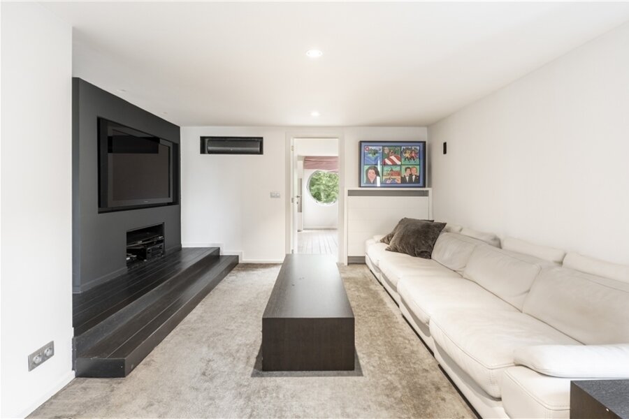 Grande pièce polyvalente, actuellement utilisée comme salle de télévision.