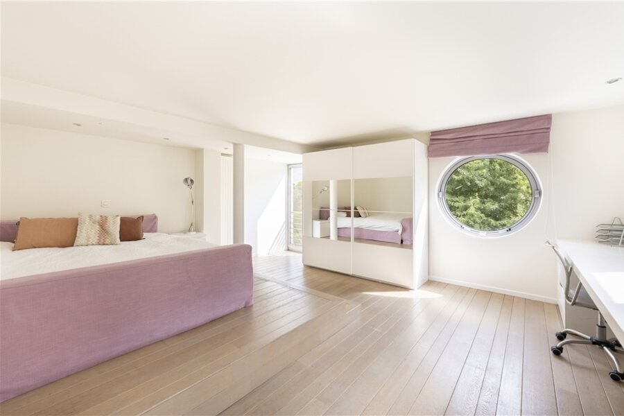 On y trouve également un bureau, un salon séparé et une buanderie.