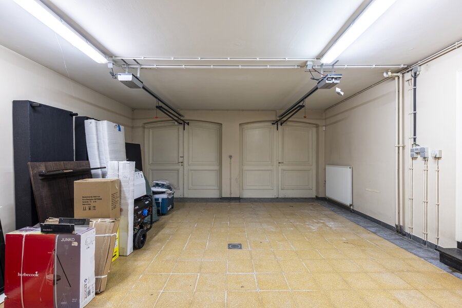Verder op het gelijkvloers bevinden zich een vestiaire, een gastentoilet en een wasplaats. Vanuit de wasplaats is er toegang tot de ruime garage, voorzien van meerdere poorten aan voor- en achterzijde.