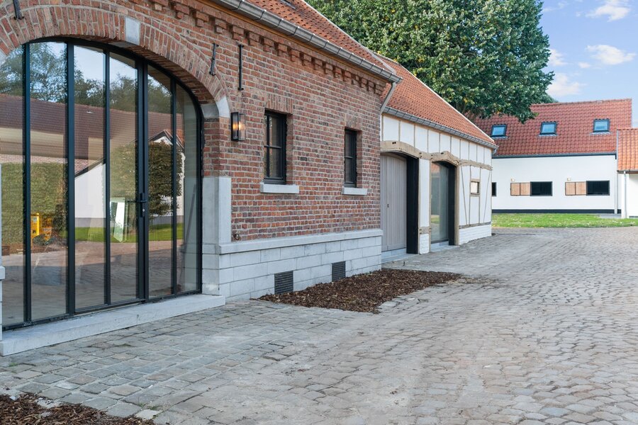 U bereikt het eigendom via een private oprijlaan die uitkomt op de binnenplaats.