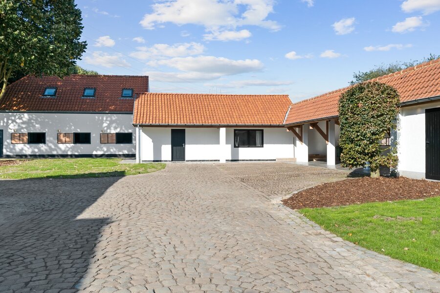 Dit exclusief hippisch eigendom omvat een binnen- en buitenpiste, paardenstallen en een riant landhuis, dewelke verdeeld is in een woning en een guesthouse/appartement.