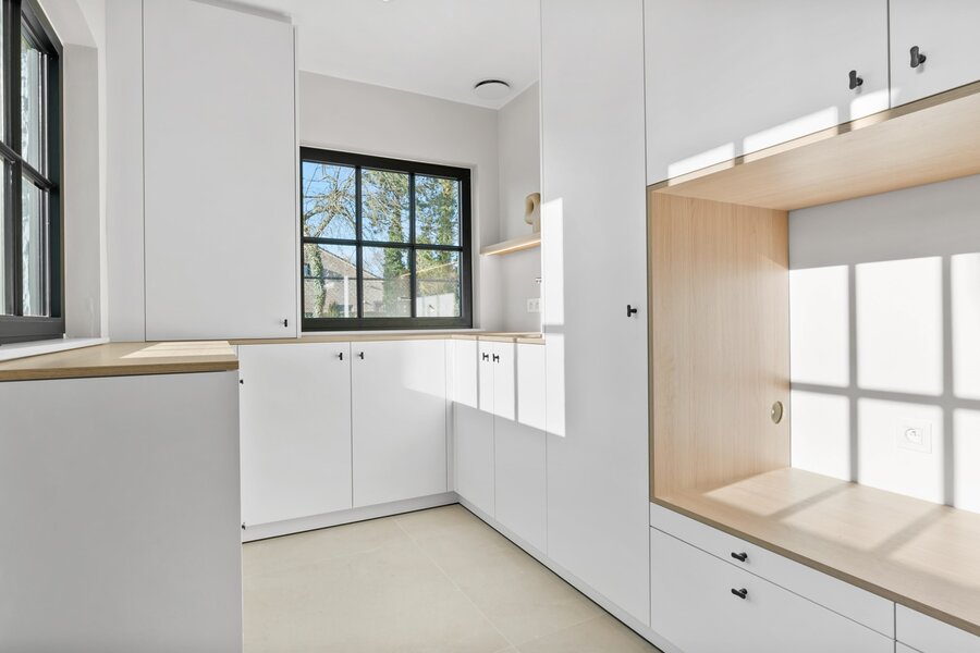 Vanuit de keuken krijgen wij vervolgens toegang tot de aparte wasplaats en het gastentoilet.