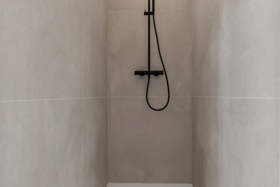 De master suite bestaat uit een slaapkamer met naastliggend dressing en aansluitend een ruime luxueus ingerichte badkamer. De badkamer is voorzien van een inloopdouche, dubbele wastafel, ligbad en toilet.