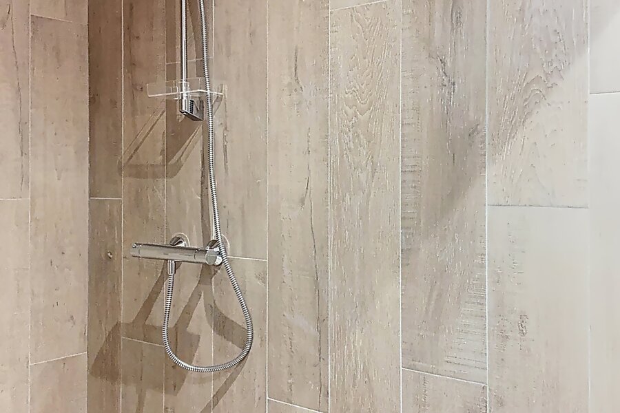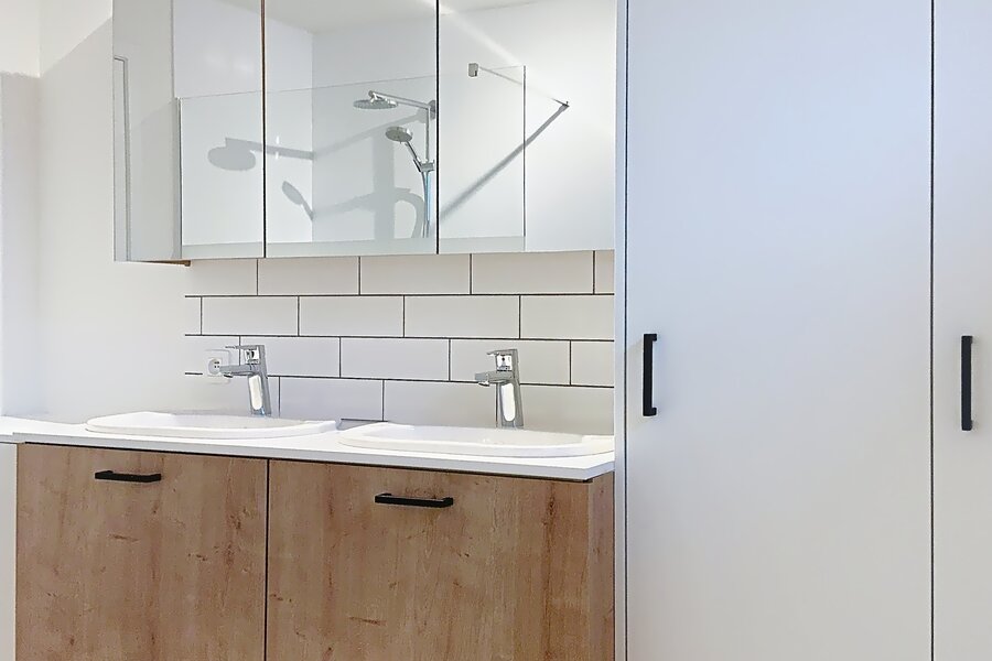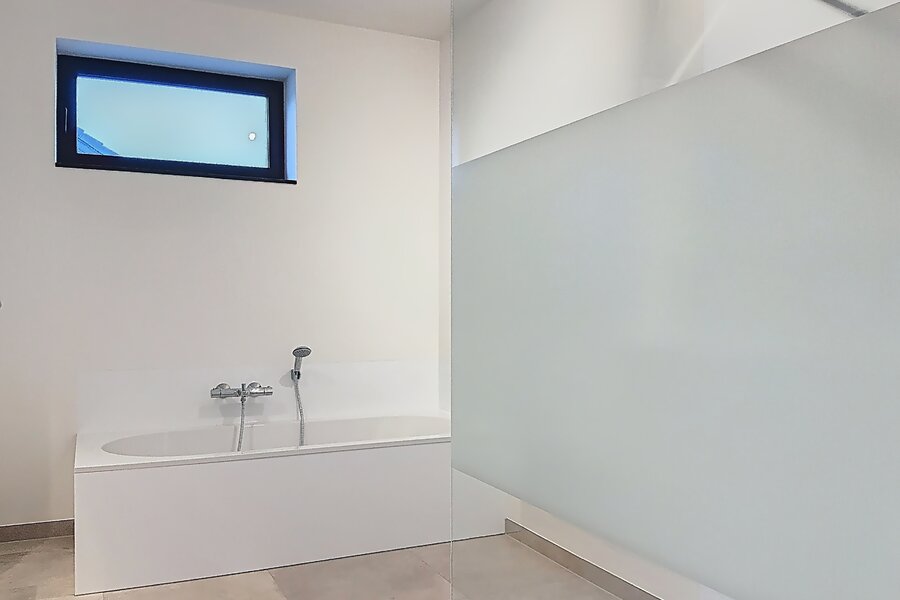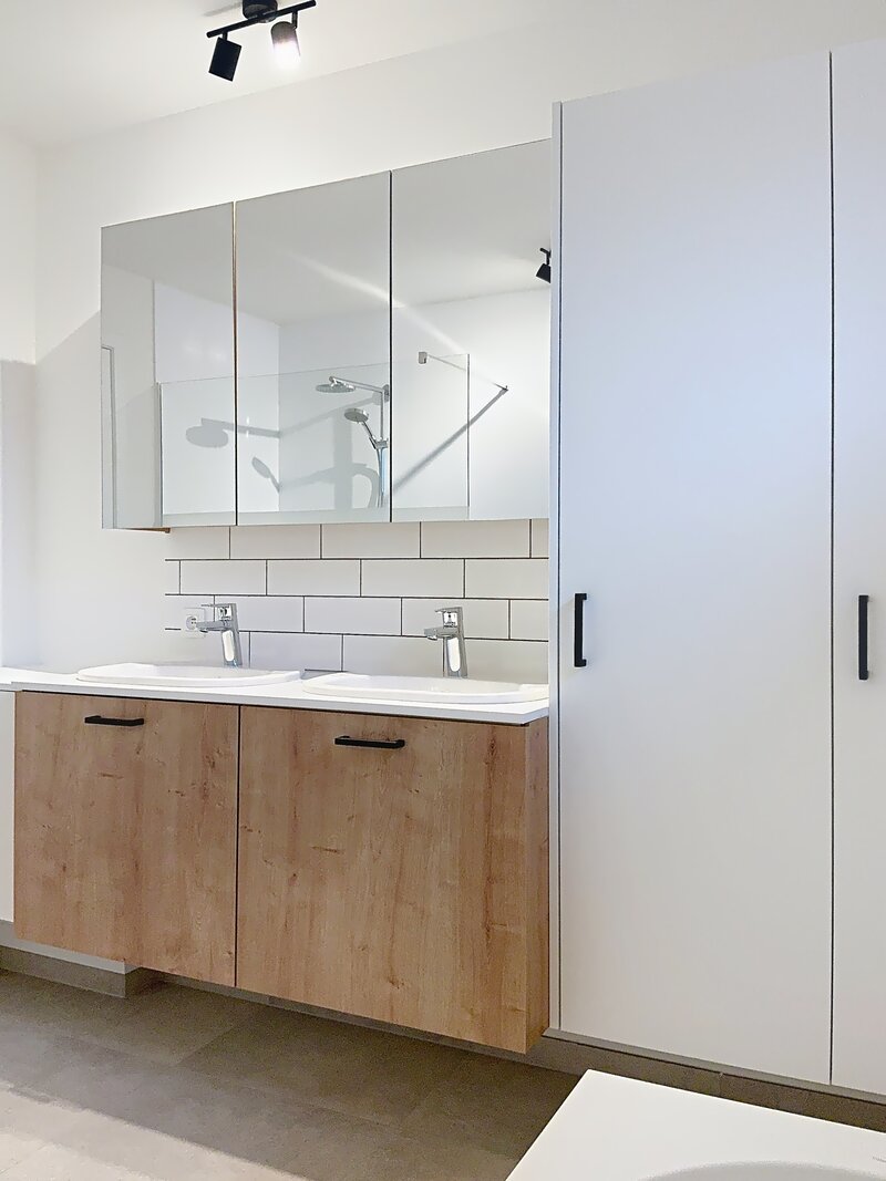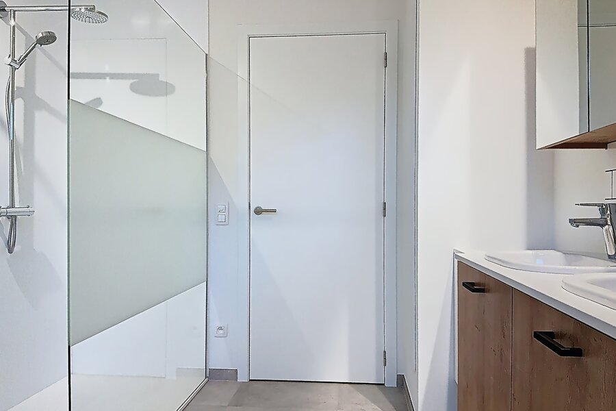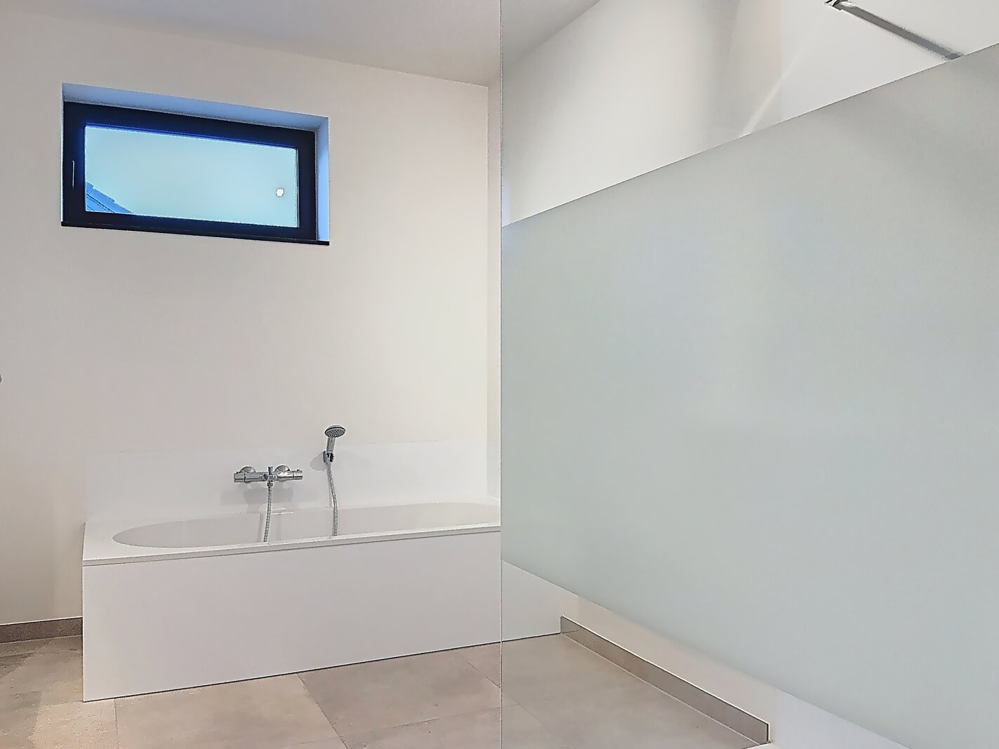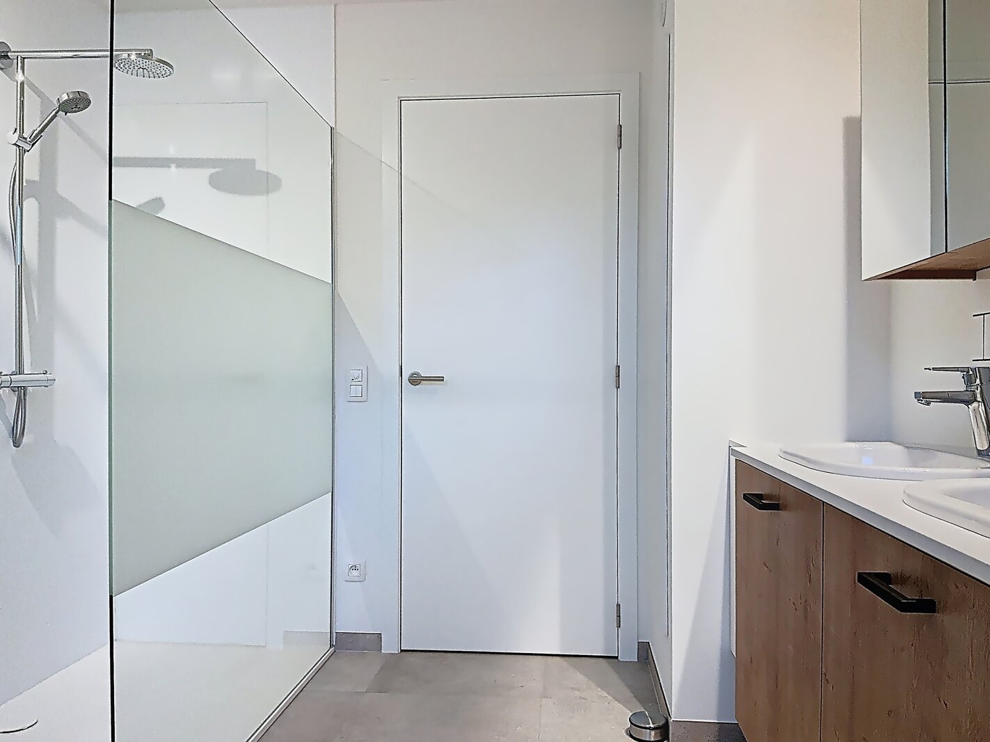 - 1 stijlvolle badkamer (op de eerste verdieping), modern afgewerkt en 1 douchekamer (op het gelijkvloers).