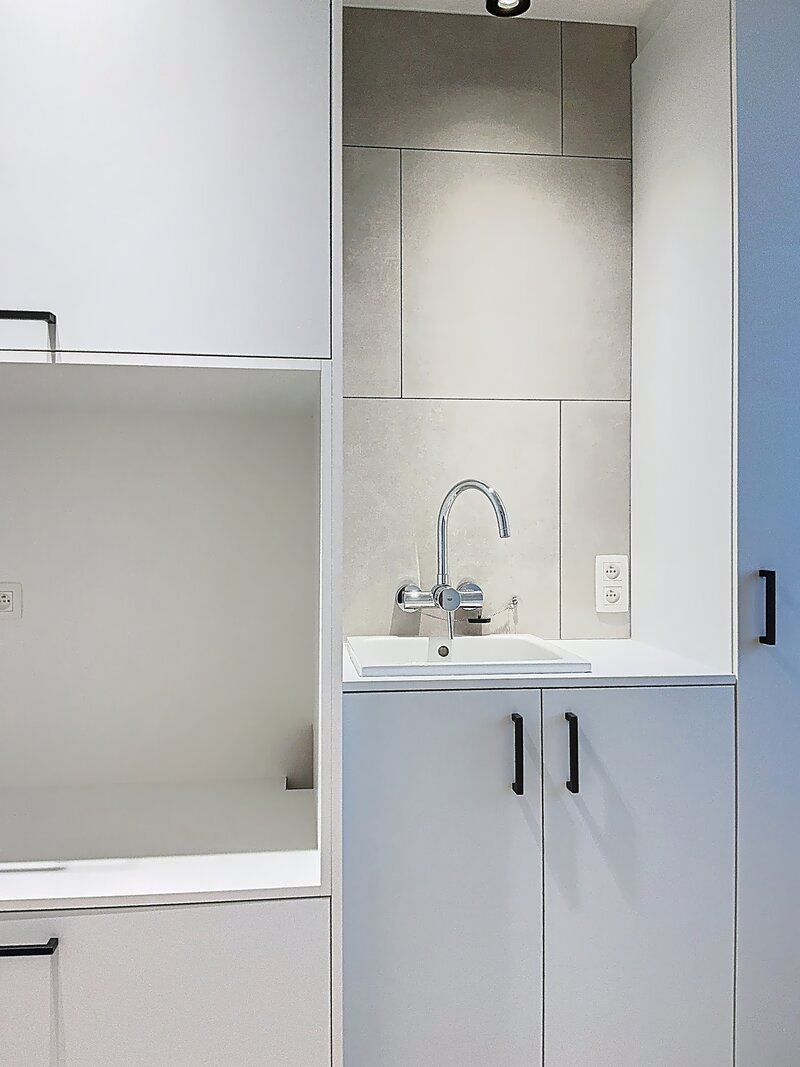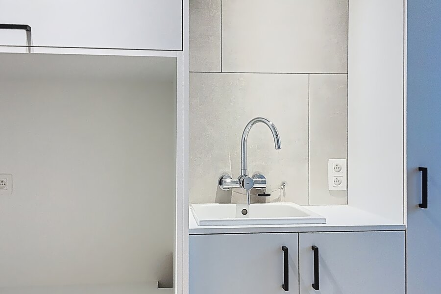- Wasplaats met berging, praktisch en voorzien van kasten op maat.
