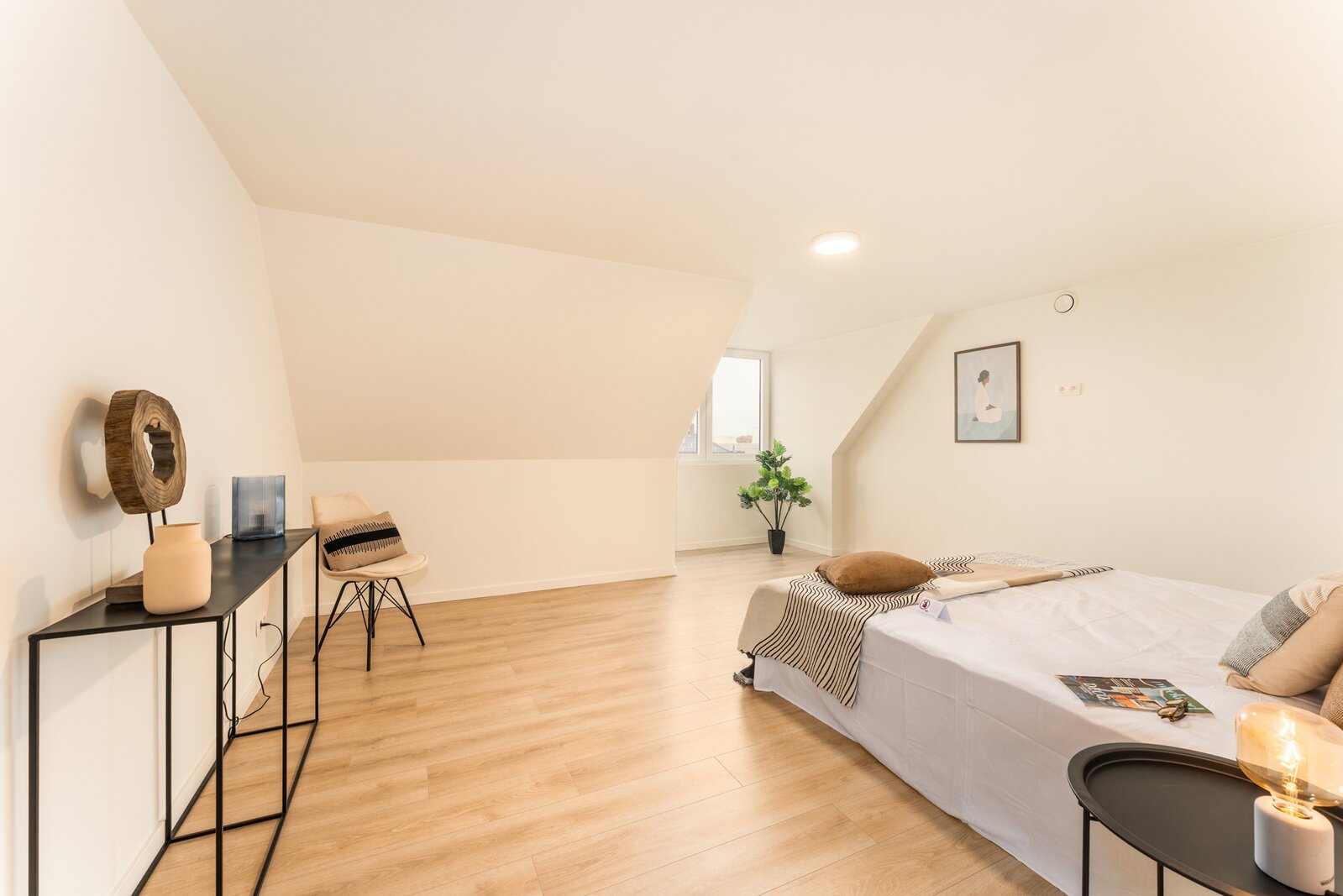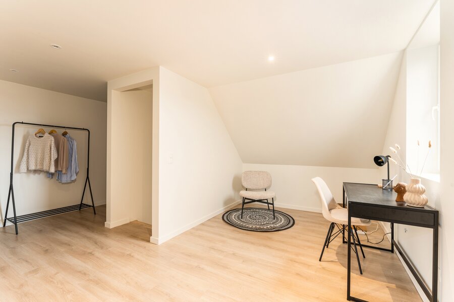 La grande suite parentale se situe au deuxième étage et dispose d’un dressing et d’un coin bureau séparé.