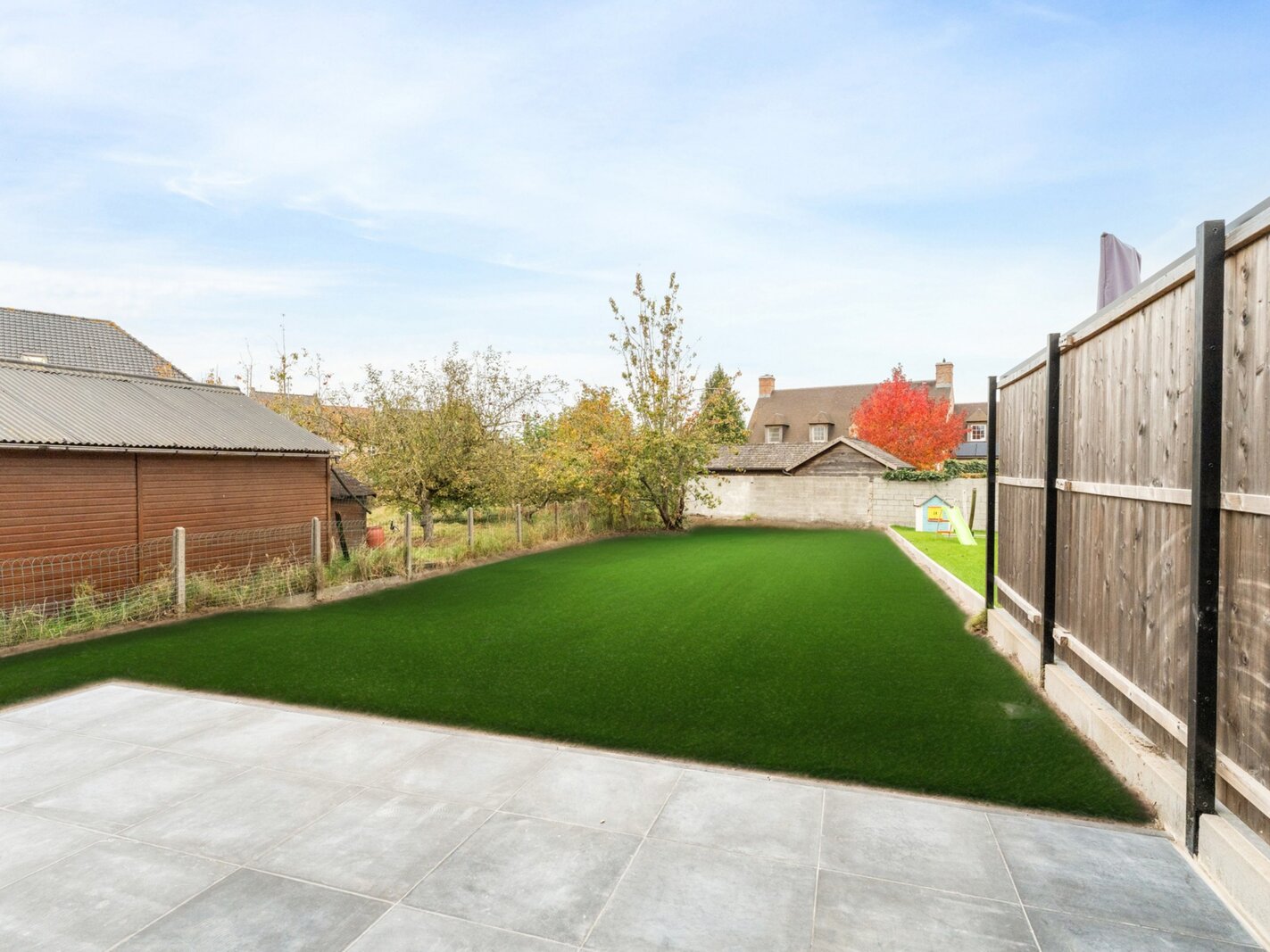 La maison est érigée sur une belle parcelle et bénéficie déjà d’une terrasse aménagée ainsi que d’une allée pour plusieurs voitures.