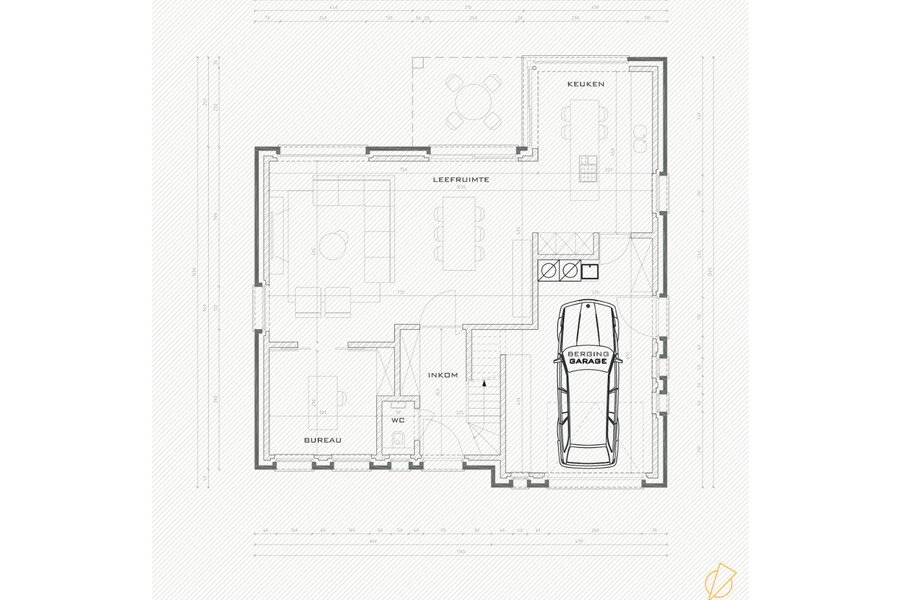 Cette maison est proposée sur plan à un prix indicatif, mais peut encore être entièrement adaptée à vos souhaits. Vous préférez un espace de vie plus grand à la place du garage ou une autre configuration ? Nous réalisons votre habitation sur mesure. Contactez-nous pour découvrir les possibilités.