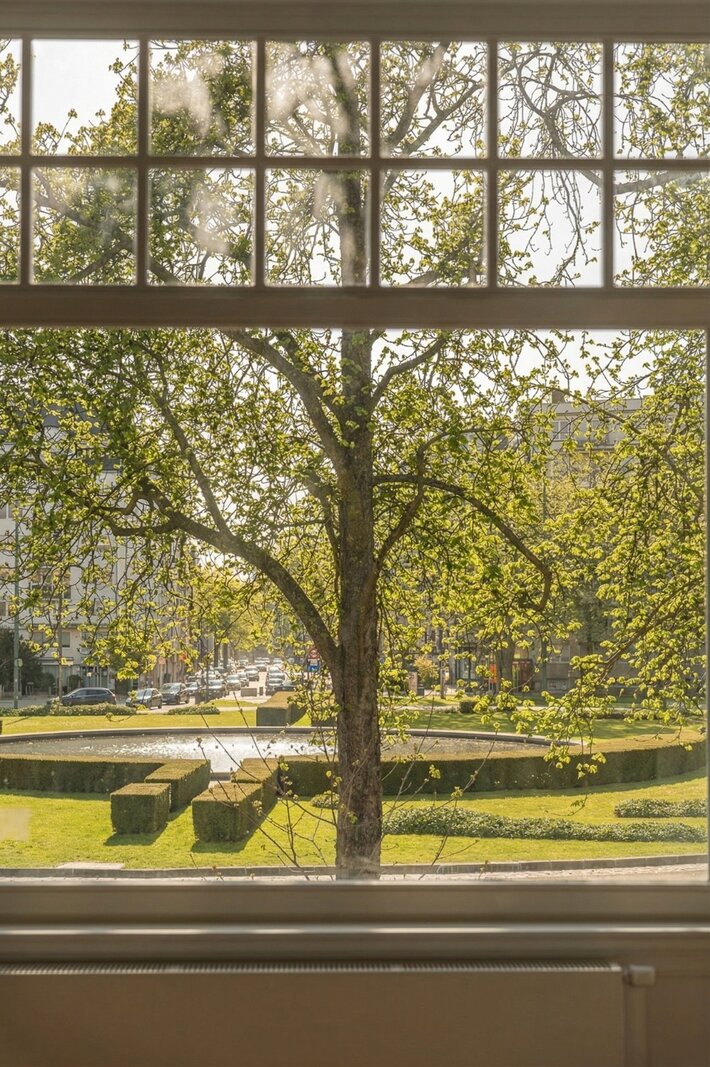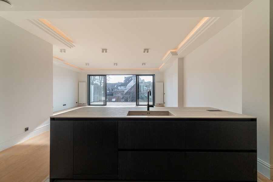 Situé au 1ᵉ étage d’une maison de caractère rénovée, cet appartement de ±158 m² comprend 2 chambres et 2 salles de bains. Il dispose d’un séjour avec cuisine ouverte entièrement équipée Siemens et s’ouvre sur une terrasse plein sud.