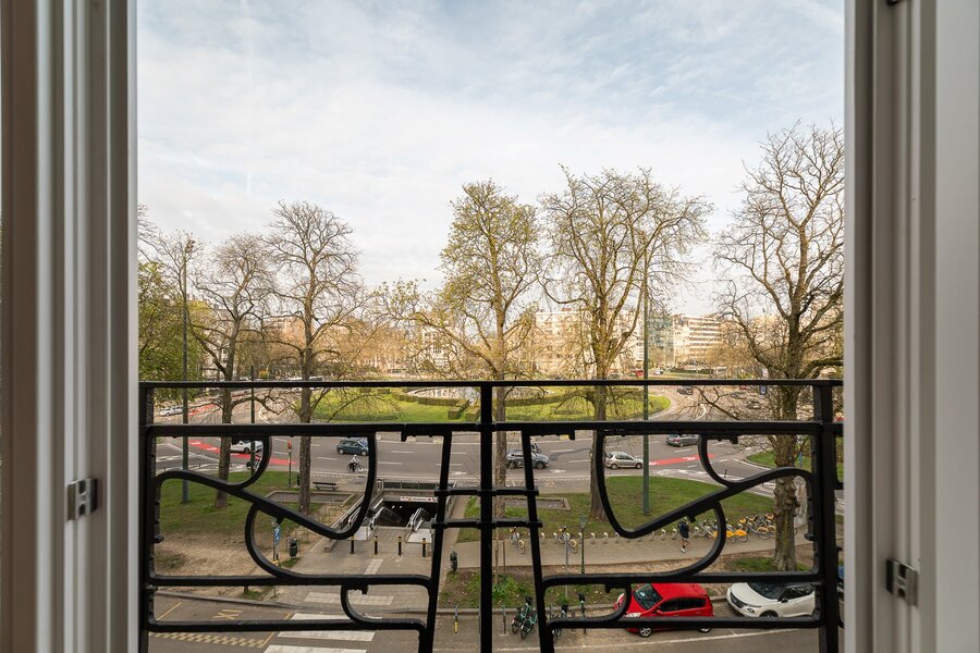 L’appartement est situé sur le Square Montgomery, à proximité des transports, commerces et institutions européennes.