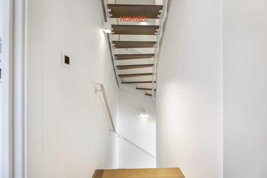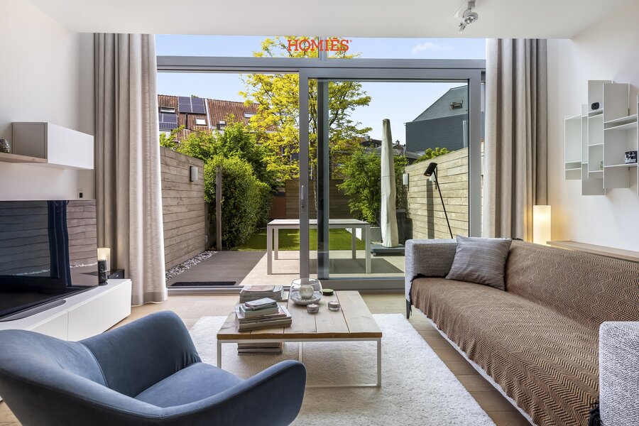 In een verborgen hoekje van het bruisende centrum van Leuven, aan een charmant en verkeersvrij pleintje, ontdekt u deze zeldzame parel: een energiezuinige stadswoning van topniveau, verscholen achter een discrete gevel. Wat volgt, is pure beleving: 170 m² wooncomfort met overvloedige lichtinval, een doordachte indeling en een afwerking tot in het kleinste detail geperfectioneerd. De leefruimte met vide en dubbelhoog raam creëert een indrukwekkend ruimtegevoel en vloeit naadloos over in de luxueus aangelegde tuin met tropisch hardhouten wanden, sfeervolle verlichting en royaal terras. De maatkeuken met granieten werkblad en ATAG-toestellen sluit hier elegant op aan. Boven vindt u drie ruime slaapkamers, twee luxueuze badkamers, een lichtrijke bureauruimte met zicht op de tuin, een praktische berging, twee nachthallen met plafondhoge kasten (14lm in totaal) en een overvloed aan functionele details: massief eiken parket, domotica (o.a. Niko Home Control 2.0), ventilatiesysteem, elektrische gordijnen, designverlichting, Cat6-netwerk, videodeurbel, veiligheidscamera’s, overal vliesbehang voorzien en professioneel geschilderd… Alles in perfecte staat, volledig instapklaar. Kelderberging en twee fietsenstallingen inbegrepen.