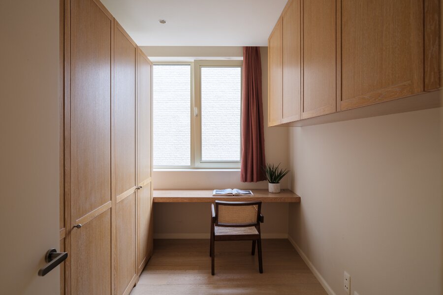 Het appartement (EPC A) omvat een ruime hoofdslaapkamer met en suite badkamer en een tweede, compactere kamer die kan dienen als dressing, gastenkamer of bureau. Het appartement biedt een zeer aangename woonervaring dankzij de hoge afwerkingsgraad en de doordachte indeling.
