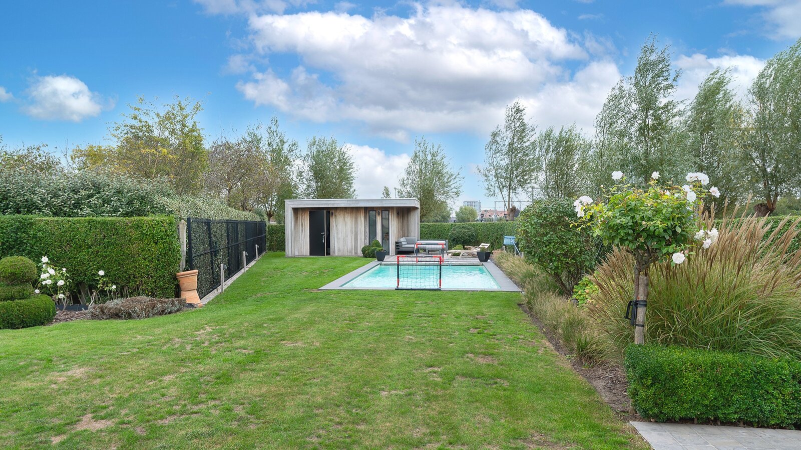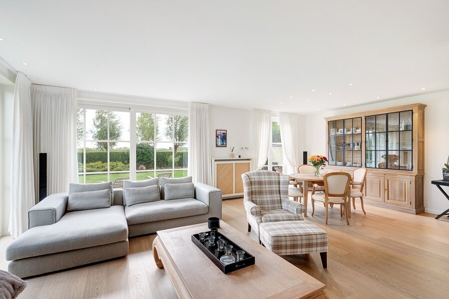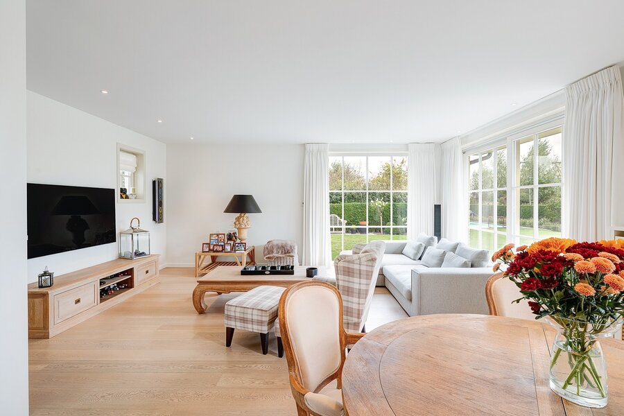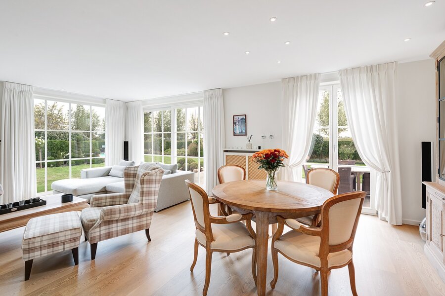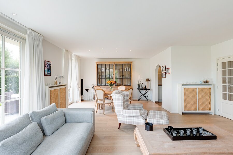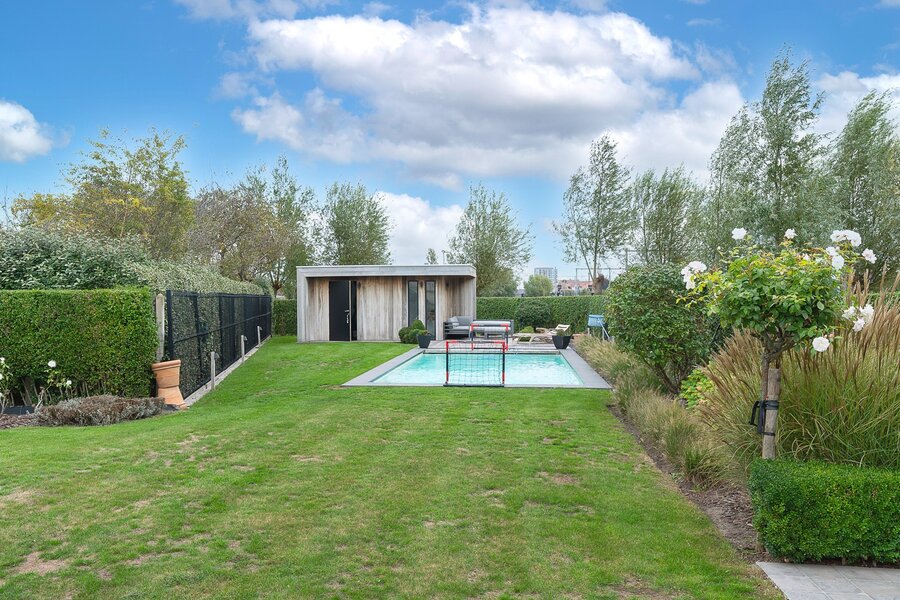 Belle villa jumelée située au calme à Knokke, à deux pas de Duinenwater, de la mer et du centre. Hall d’entrée avec vestiaire et toilette invités. Spacieux et lumineux séjour comprenant un salon et une salle à manger avec accès direct au jardin ensoleillé et aux terrasses orientées plein sud. Agréable piscine chauffée.