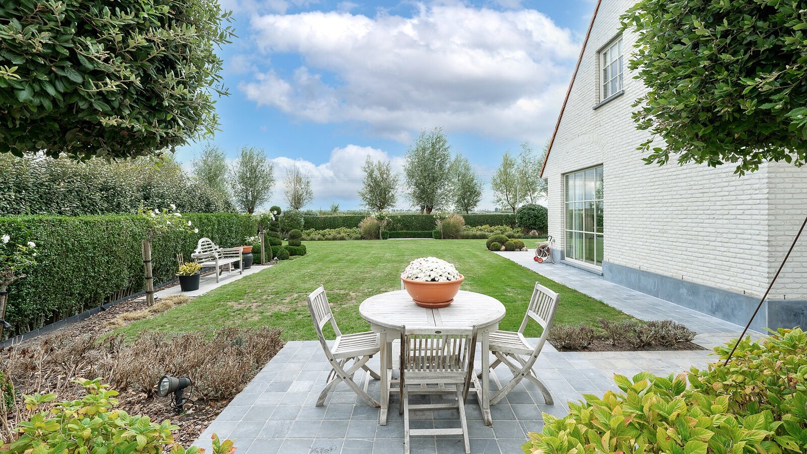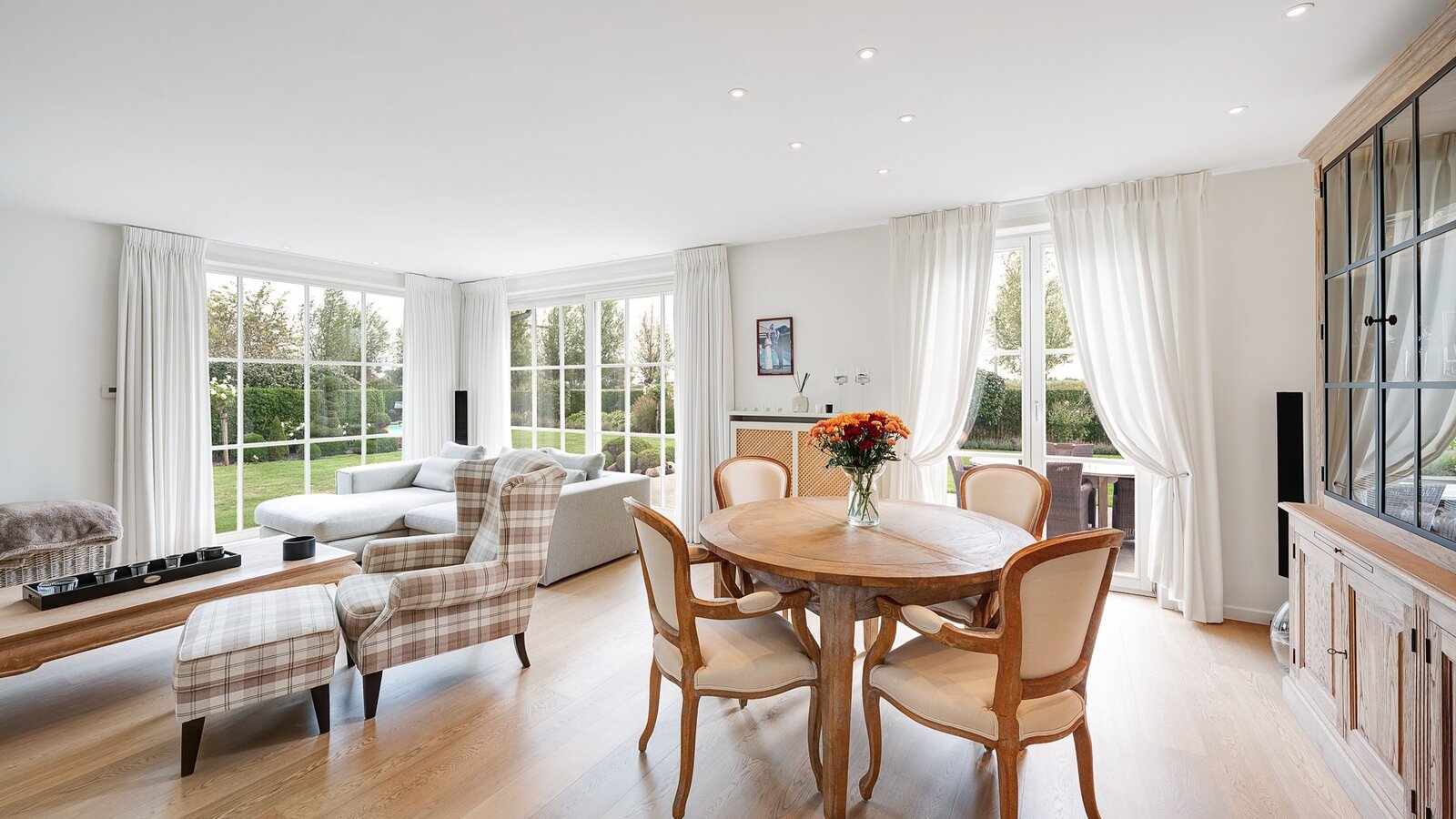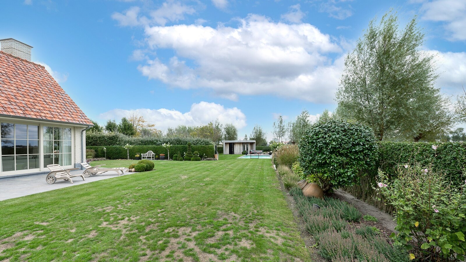 Belle villa jumelée située au calme à Knokke, à deux pas de Duinenwater, de la mer et du centre. Hall d’entrée avec vestiaire et toilette invités. Spacieux et lumineux séjour comprenant un salon et une salle à manger avec accès direct au jardin ensoleillé et aux terrasses orientées plein sud. Agréable piscine chauffée.
