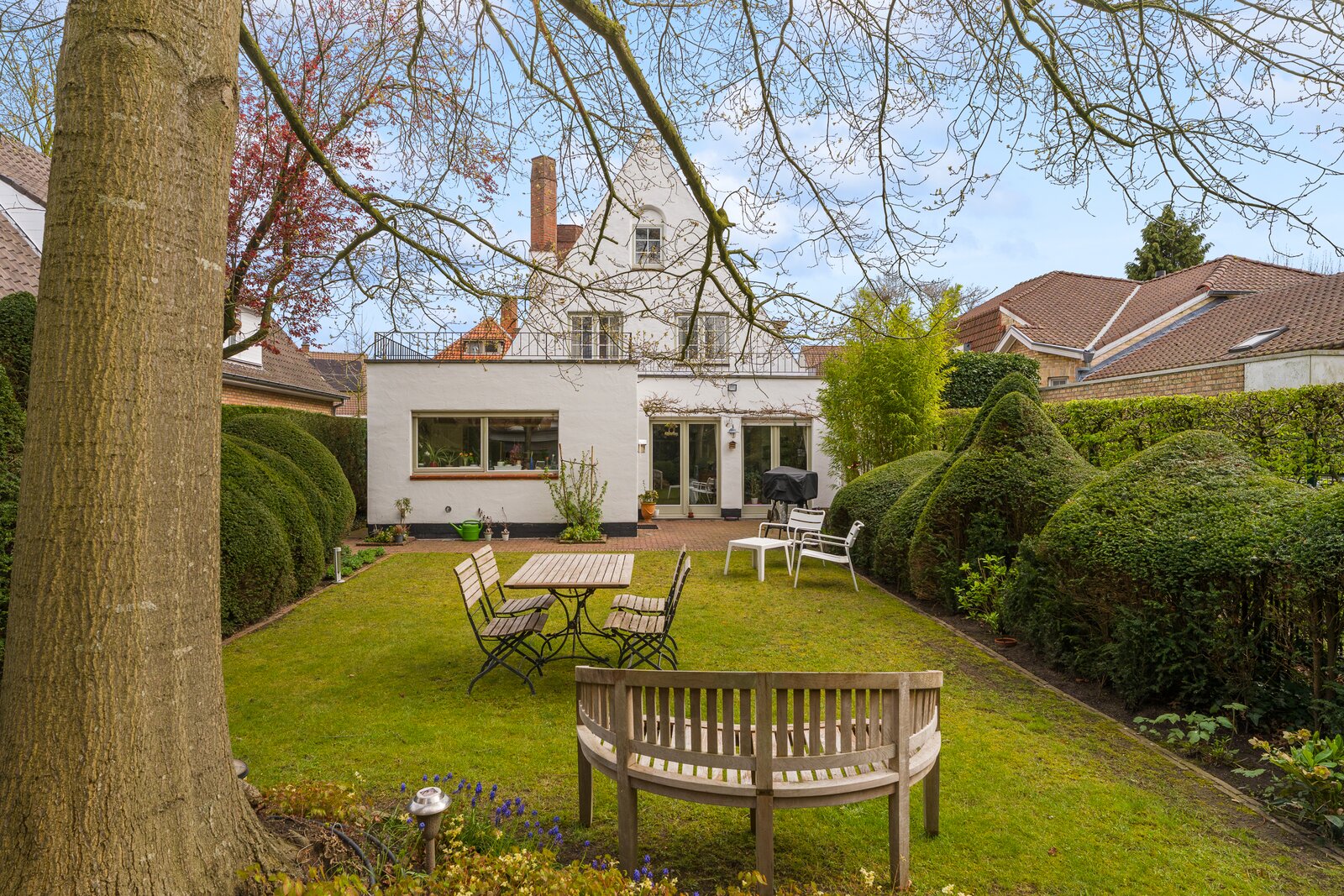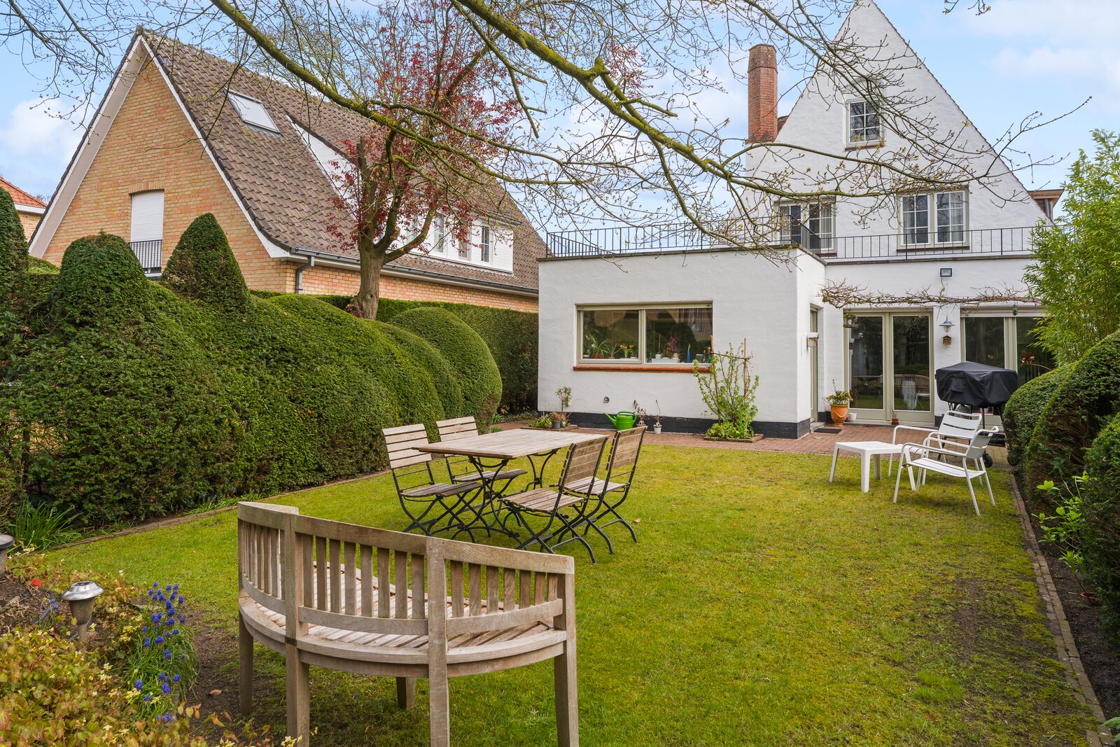 De eigendom omvat twee volwaardige entiteiten: een charmante gezinswoning vooraan en een ruim, volledig ingericht bijgebouw achteraan de tuin. Ideaal voor wie wonen en werken wil combineren, een kangoeroewoning zoekt of extra rendement wenst.