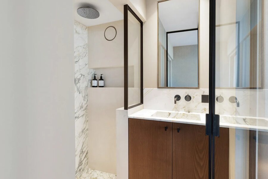 La rénovation a été réalisée avec des matériaux de haute qualité et une finition raffinée dans les moindres détails.