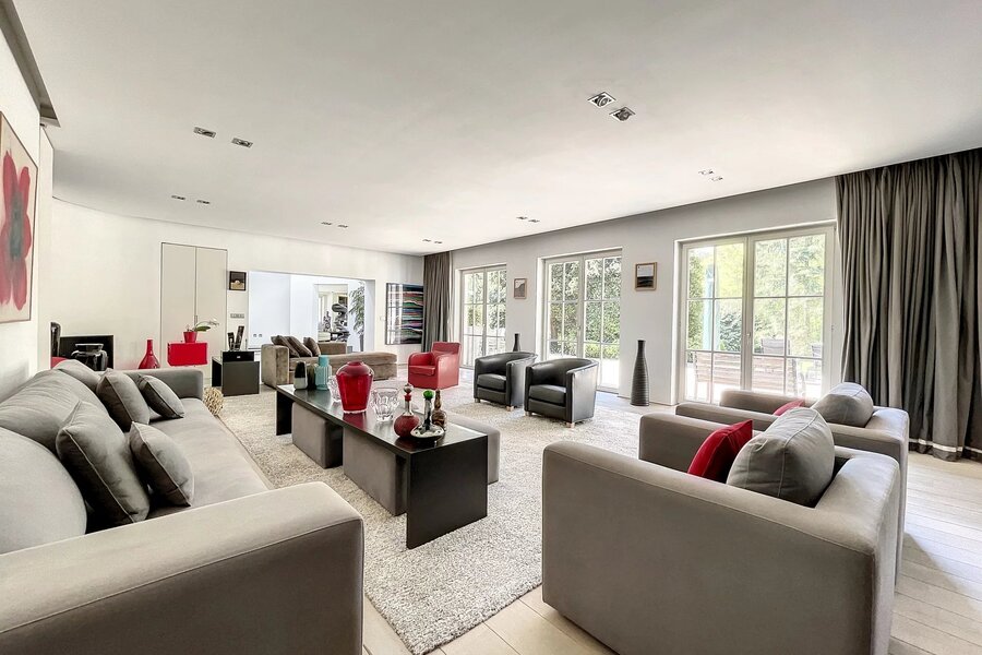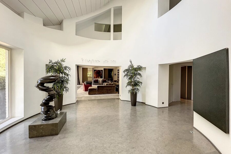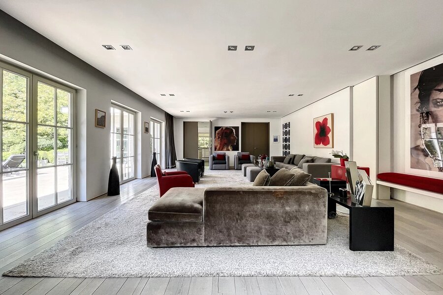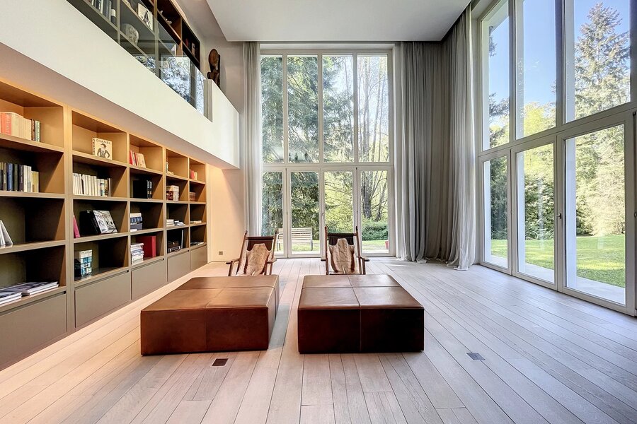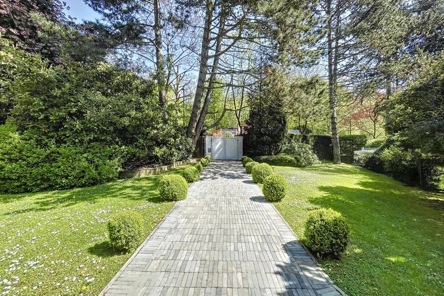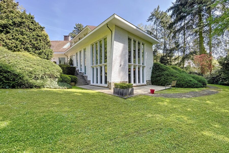 Déployée sur une superficie brute habitable de 765 m² (source PEB) et nichée au cœur d’un terrain magnifiquement arboré de 56 ares orienté plein sud, cette propriété conjugue avec élégance art de vivre, volumes rares et lumière omniprésente.