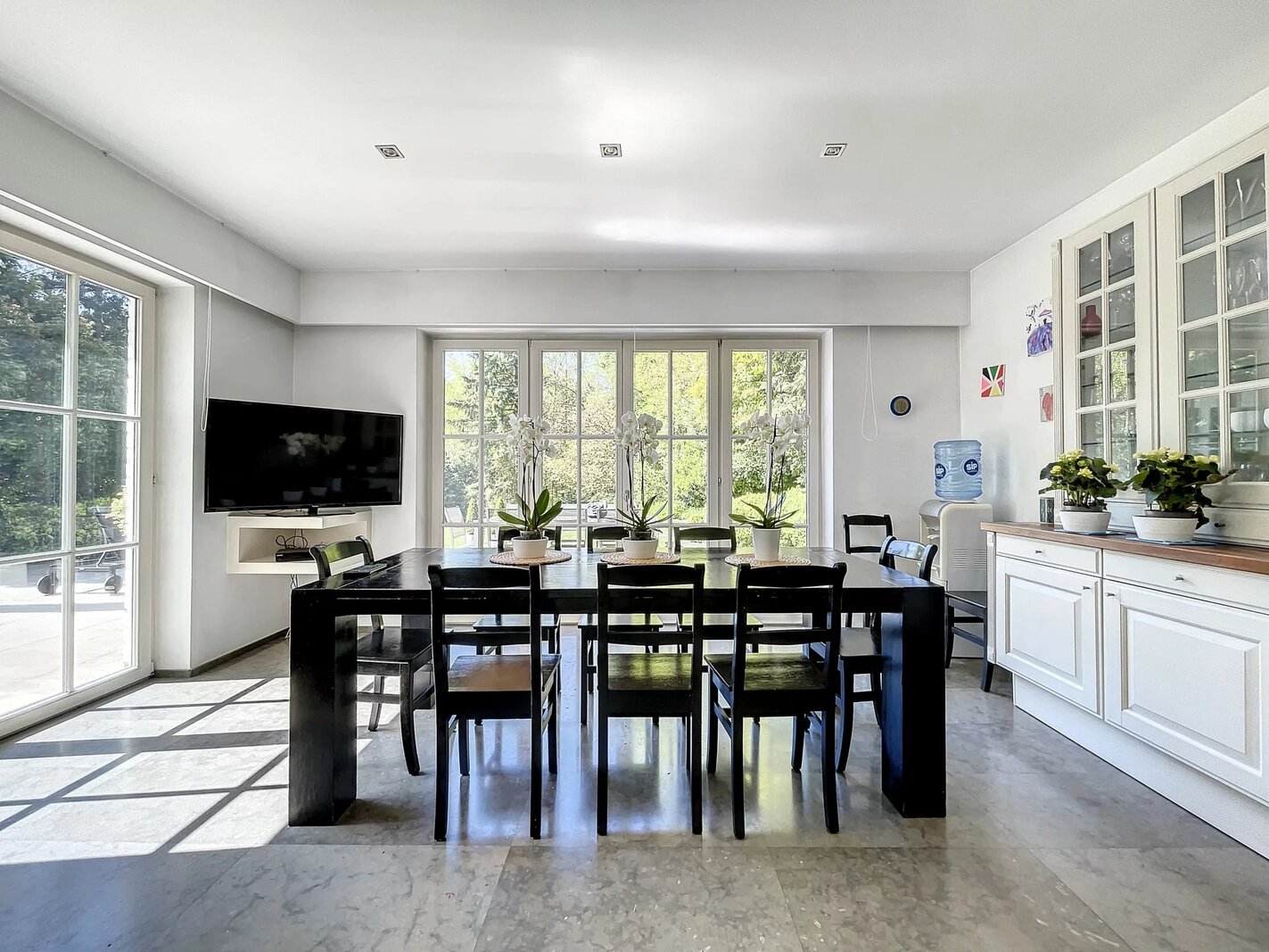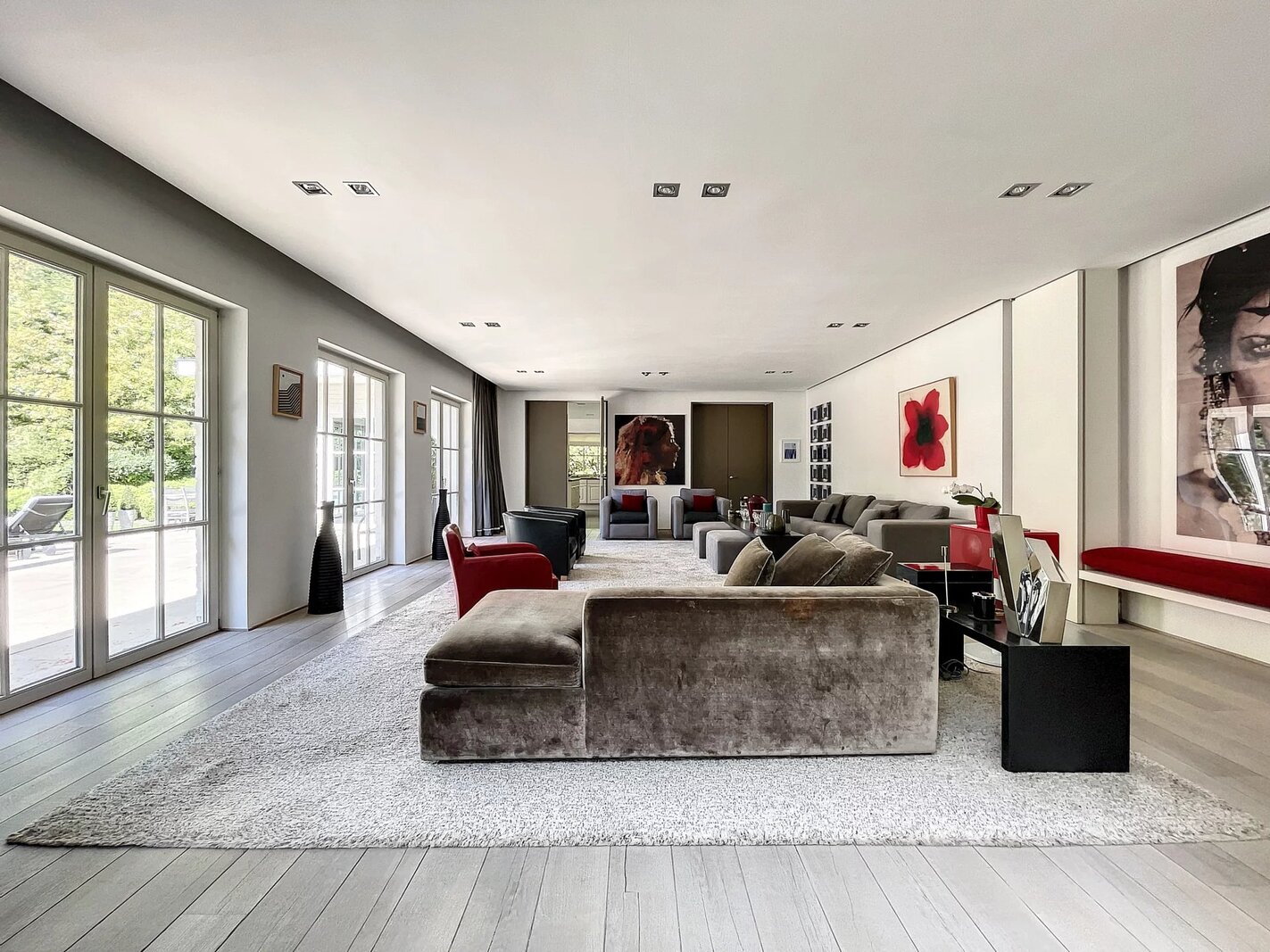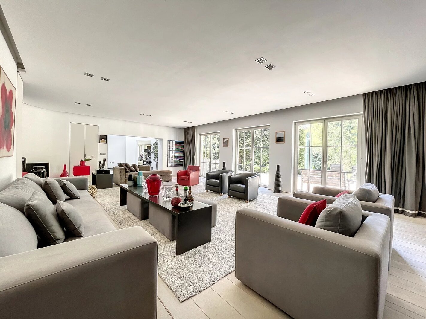 Dès l’entrée, un hall spectaculaire vous accueille, révélant la pureté des lignes et la subtilité des perspectives. Les réceptions, pensées pour recevoir avec raffinement, comprennent un vaste double salon, un bar sophistiqué, une cuisine design entièrement équipée avec coin dinatoire, une cuisine de service, une salle à manger séparée, une salle de réunion ainsi qu’un bureau de grande taille — espaces pouvant aisément être reconfigurés en chambres supplémentaires selon vos besoins.