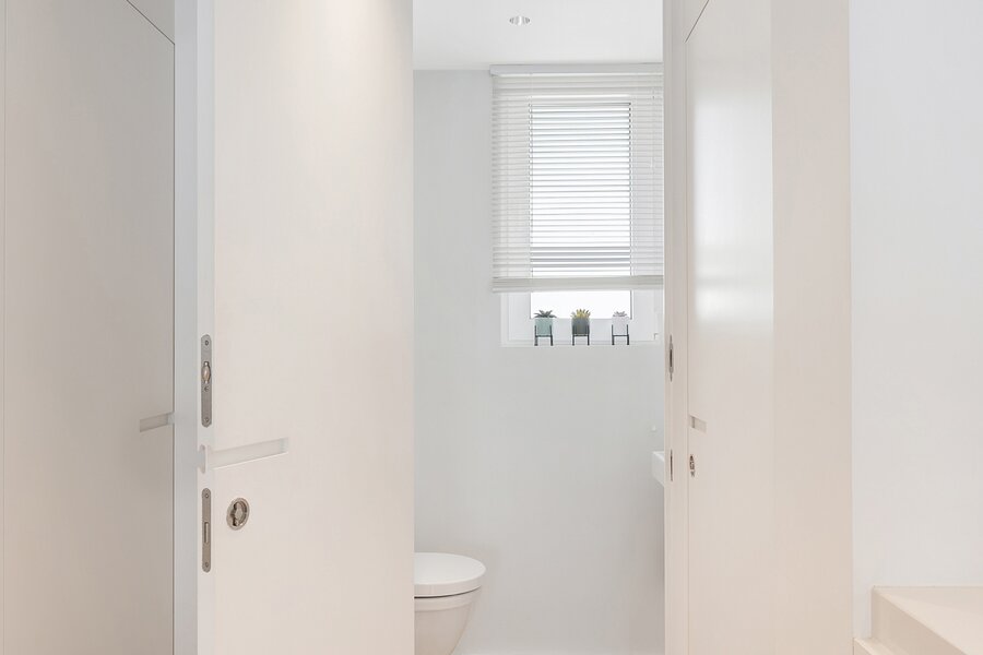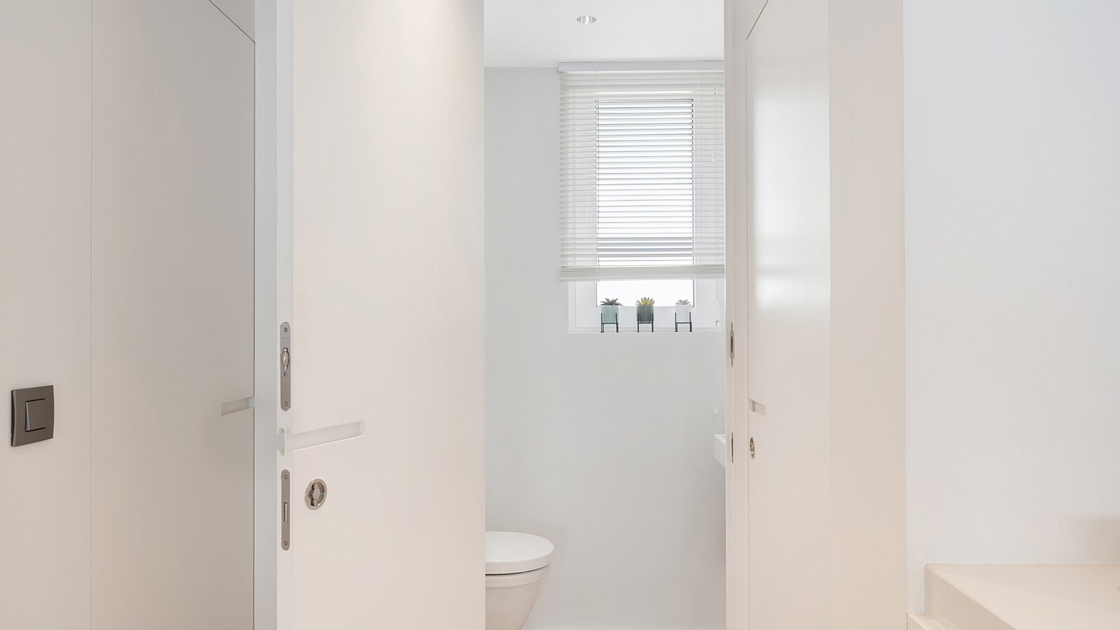 Composition : Hall d’entrée avec toilettes invités. Salon avec vue latérale sur la mer, cuisine ouverte. Chambre spacieuse donnant sur la terrasse à l’arrière. Douche.