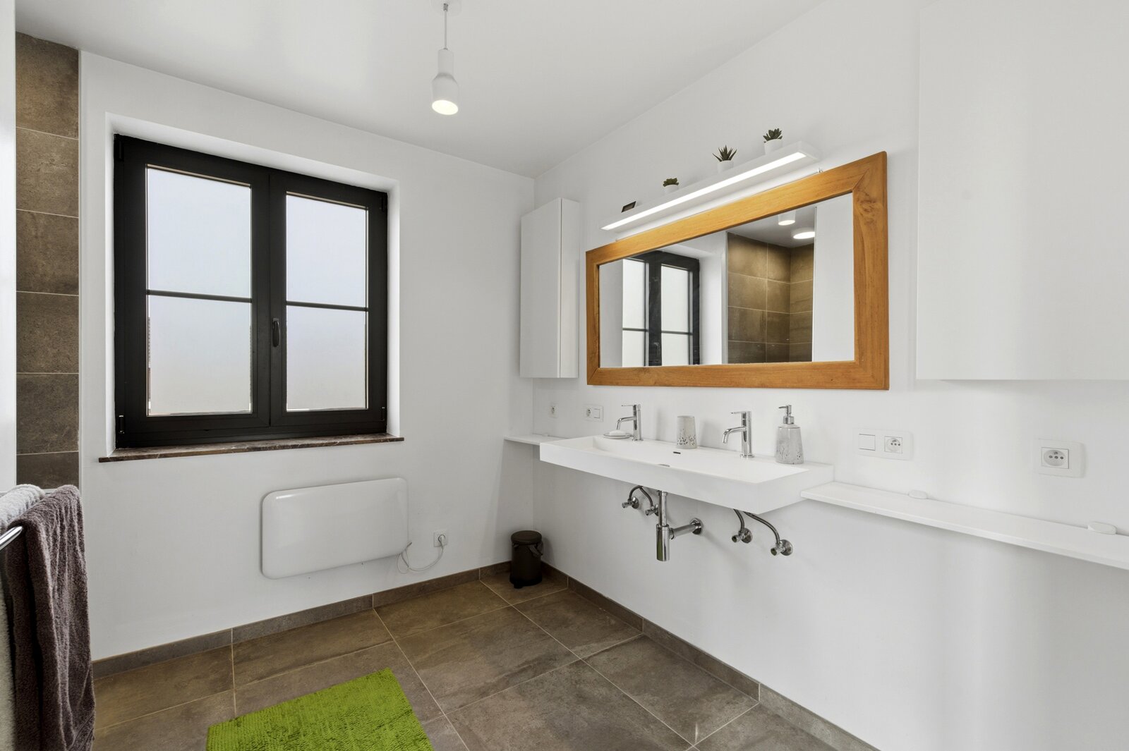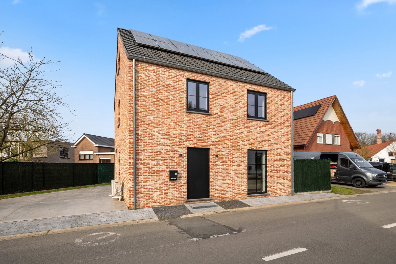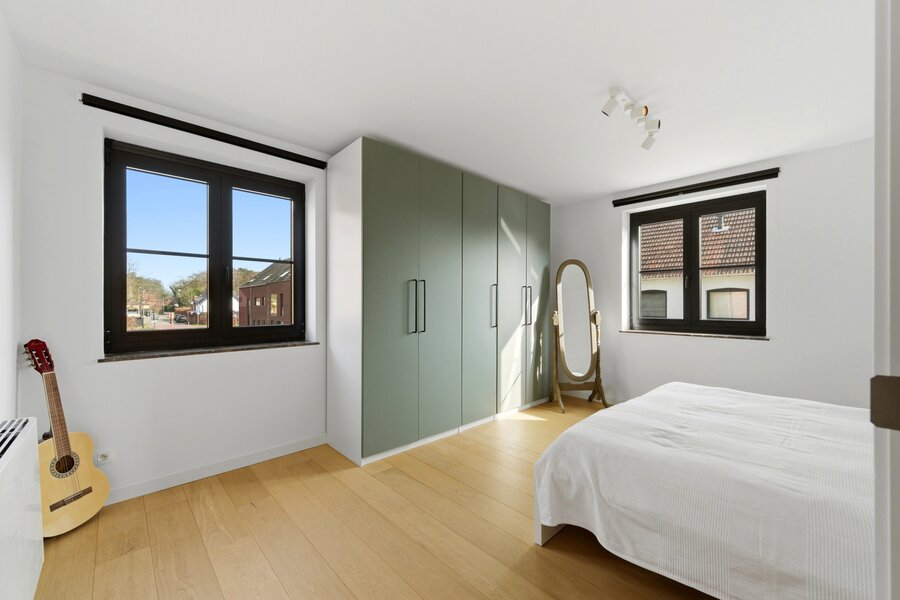 De woning is recent gebouwd en voldoet aan alle moderne normen: vloerverwarming/koeling via een warmtepomp, zonnepanelen, conforme elektriciteit (AREI), én een zeer gunstig EPC (E-peil 10).