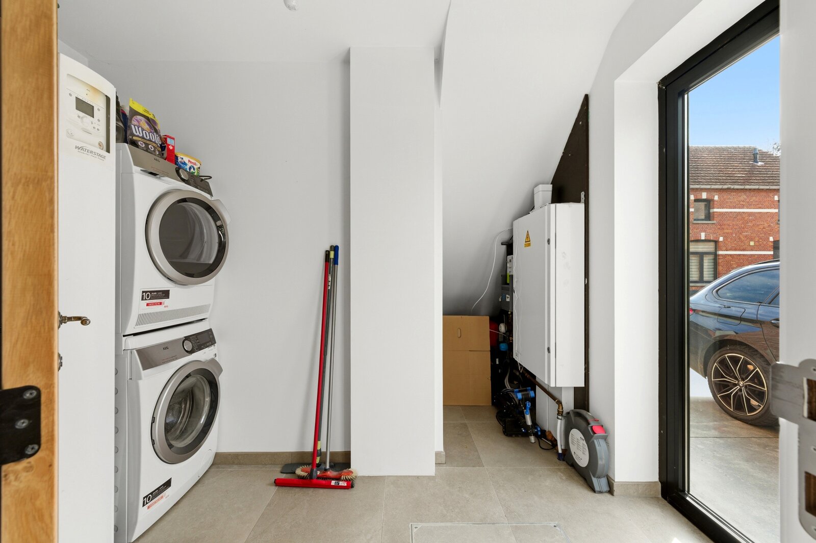 Aansluitend aan de keuken vindt u een praktische berging/wasruimte, ideaal voor extra opslagruimte.