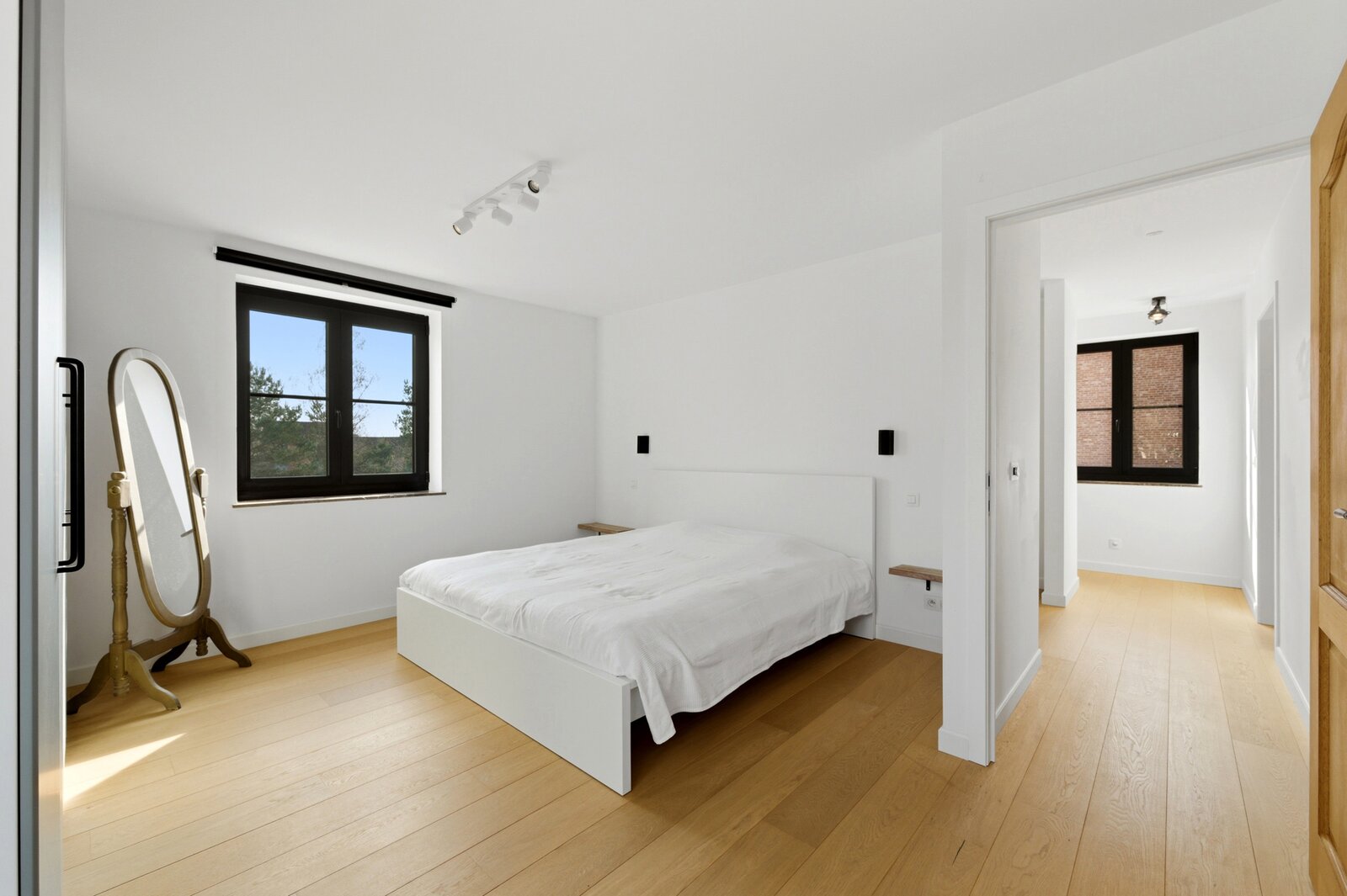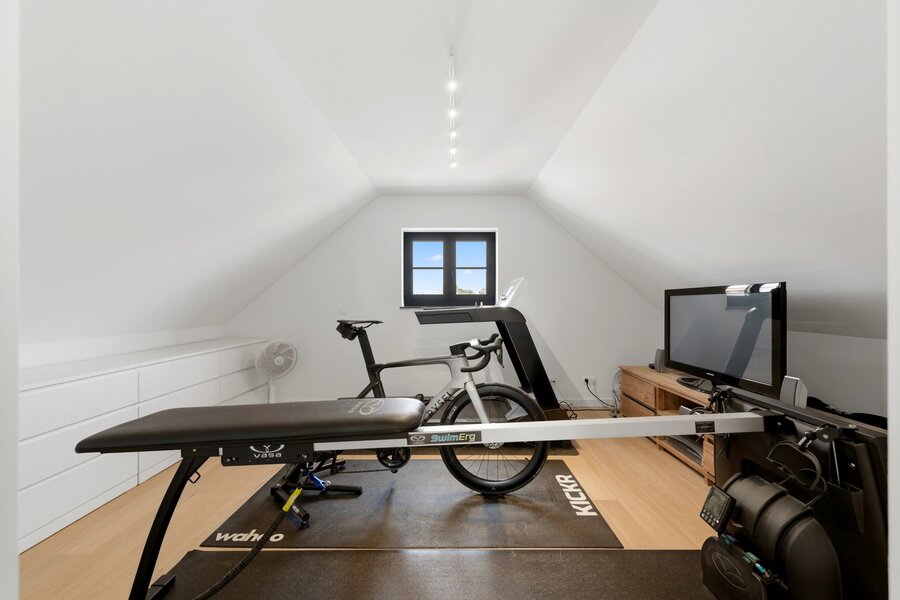 Op de tweede verdieping is er een derde slaapkamer en een ruimte die ingericht kan worden als bureauruimte of als tweede badkamer met dressing.